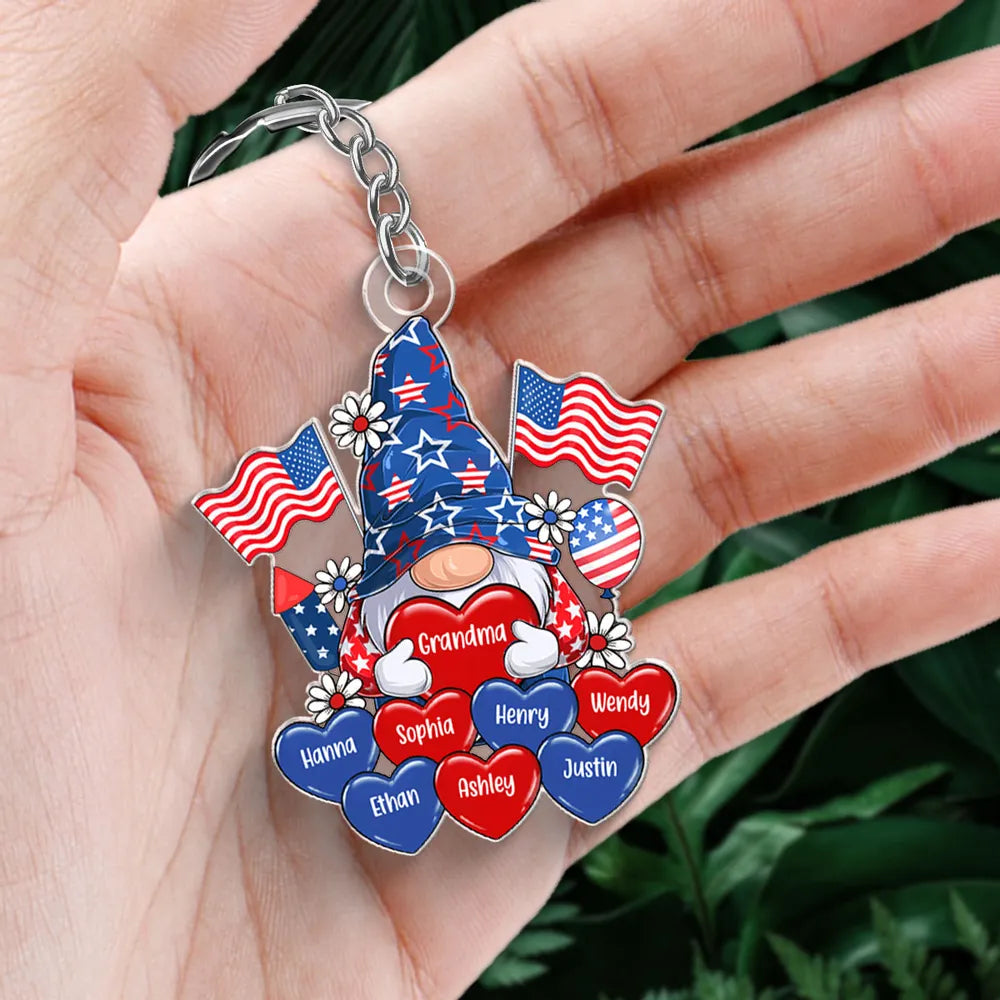 American Gnome Grandma Mom Heart - Personalized Acrylic Keychain - 4th Of July Gift For Mom Grandma