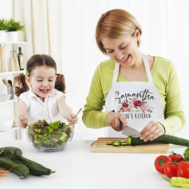 All of the aprons have embroidered designs on them for that classy elegant look. Large, embroidered images (approx. size of images: 6"-8"wide or 15cm-20cm wide) embroidered on an industrial embroidery machine. Since these aprons are embroidered, you can wash and dry them, like regular, without any worries of the image peeling. I use a stabilizer backing on the reverse side of the apron to ensure years of use.