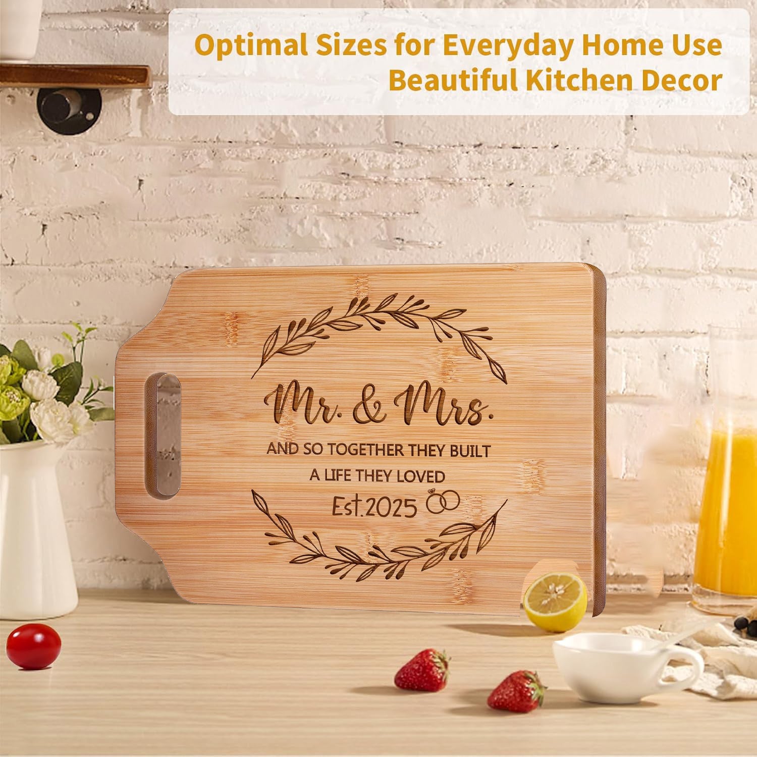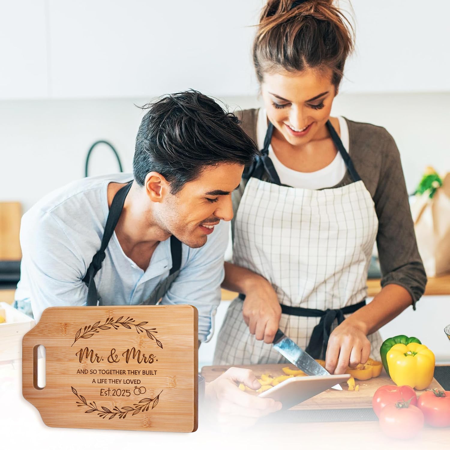 【Wedding Gifts for Couples 2025】Are you looking for a meaningful wedding gift for couple? This cutting board perfectly displays the romantic theme of "Mr and Mrs", it’s sure to make them smile with excitement for the big day and let them think of you every time they look at this special wedding gift!