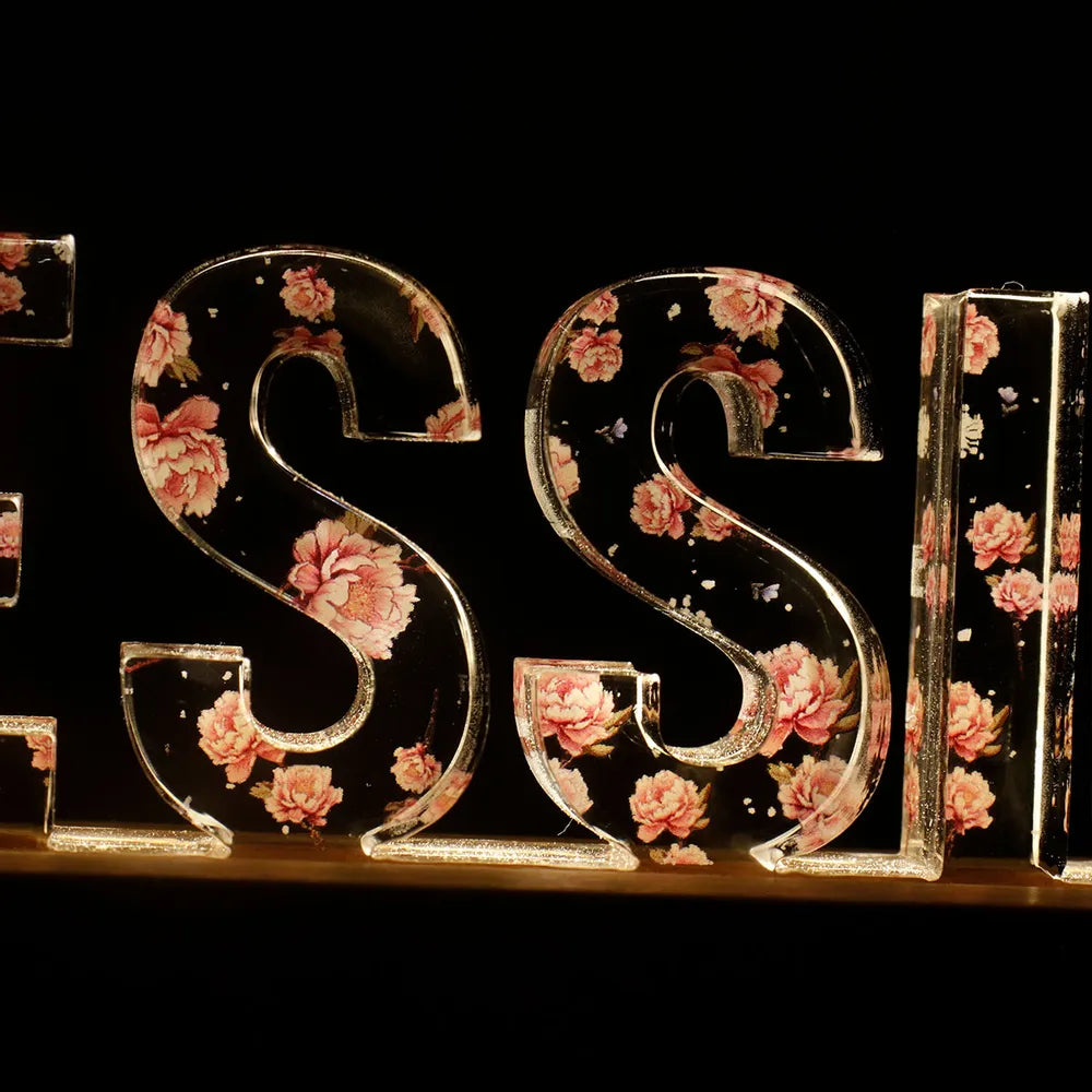 I put it on the shelf all lit and she took a minute to notice but then she said "hey hun that has my name on it, what is that!?, hey cool"