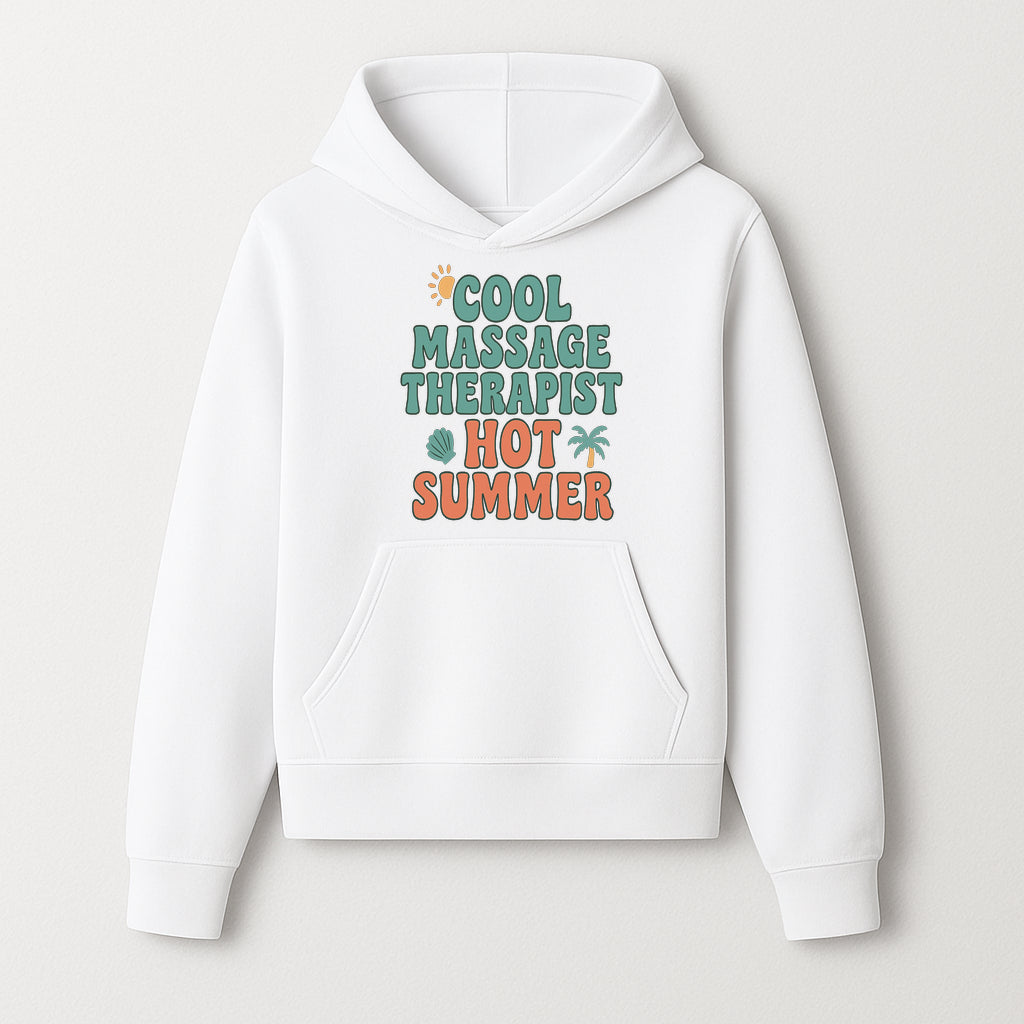 Cool Massage Therapist Hot Summer T-Shirt | Fun Summer Gift for Massage Therapists | Relaxation & Beach Vibes Design - Hoodie