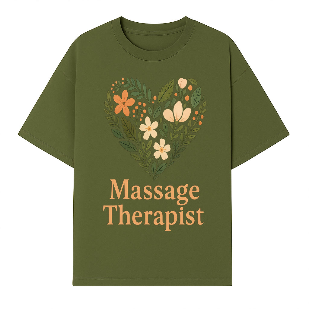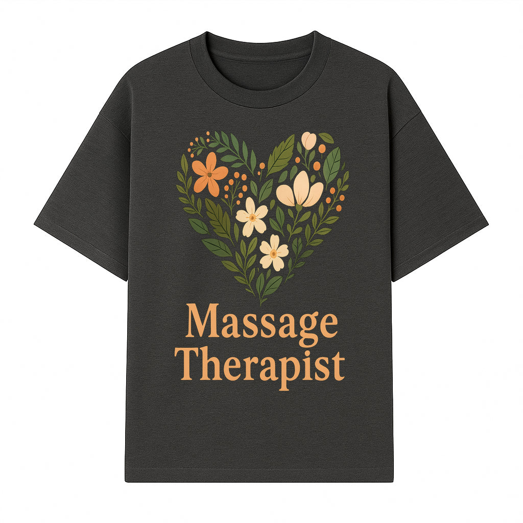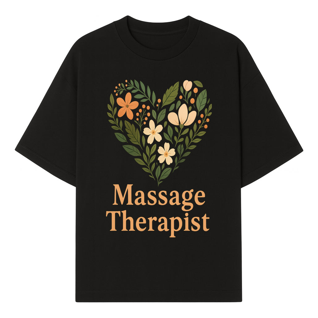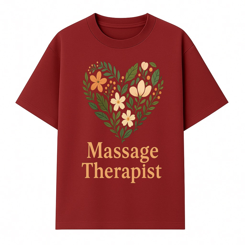 Floral Heart Massage Therapist Sign - Elegant Wall Decor for Spa, Wellness Center, or Home Massage Room, Relaxation Gift - T-shirt