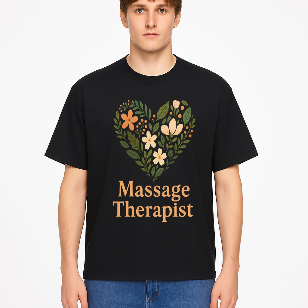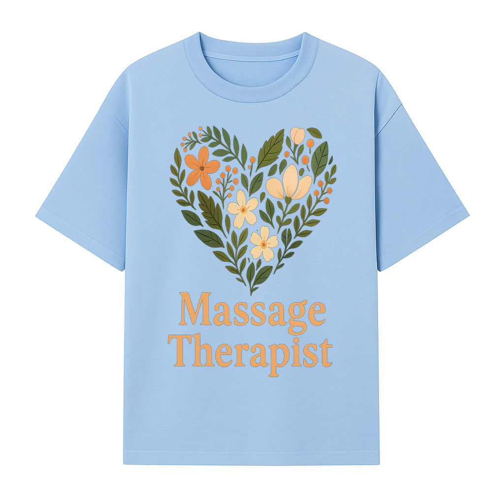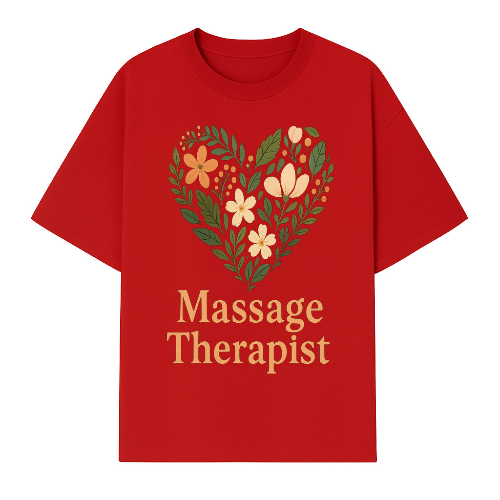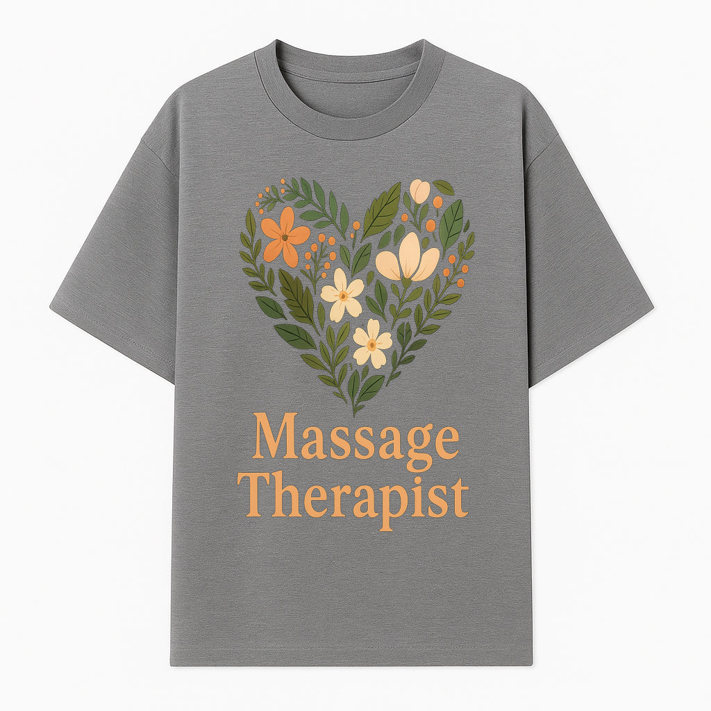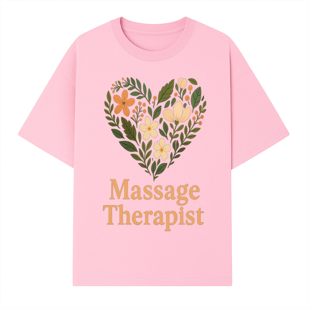Floral Heart Massage Therapist Sign - Elegant Wall Decor for Spa, Wellness Center, or Home Massage Room, Relaxation Gift - T-shirt