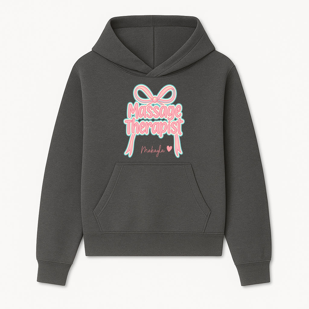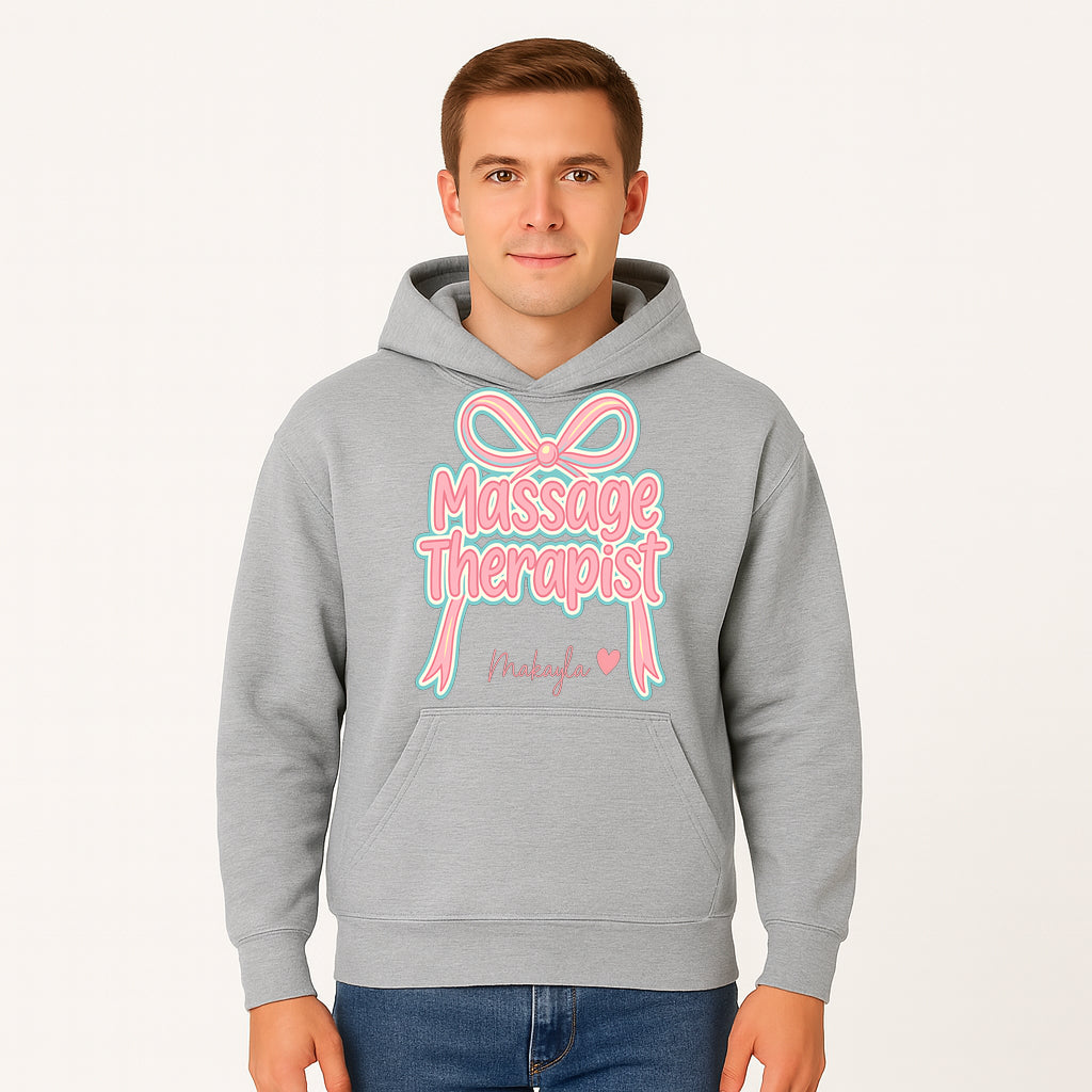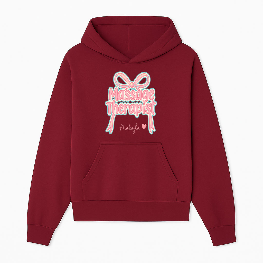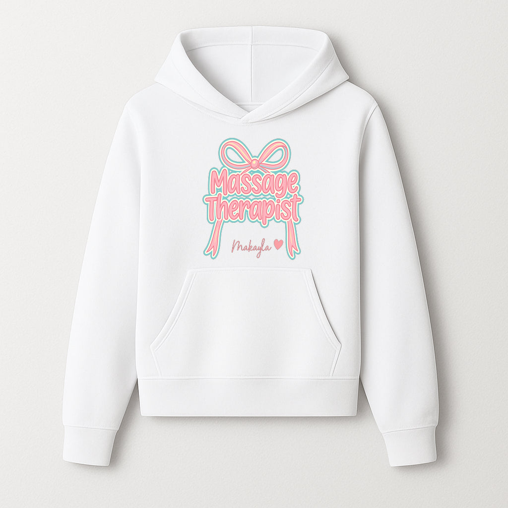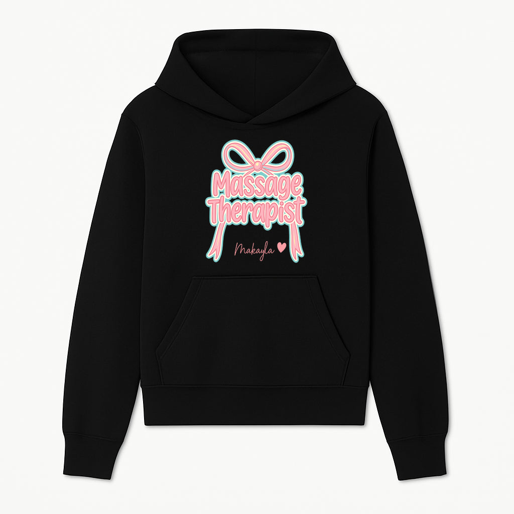 Personalized Massage Therapist Sign with Bow | Custom Name Wall Decor for Spa or Relaxation Room | Pink Neon Aesthetic - Hoodie