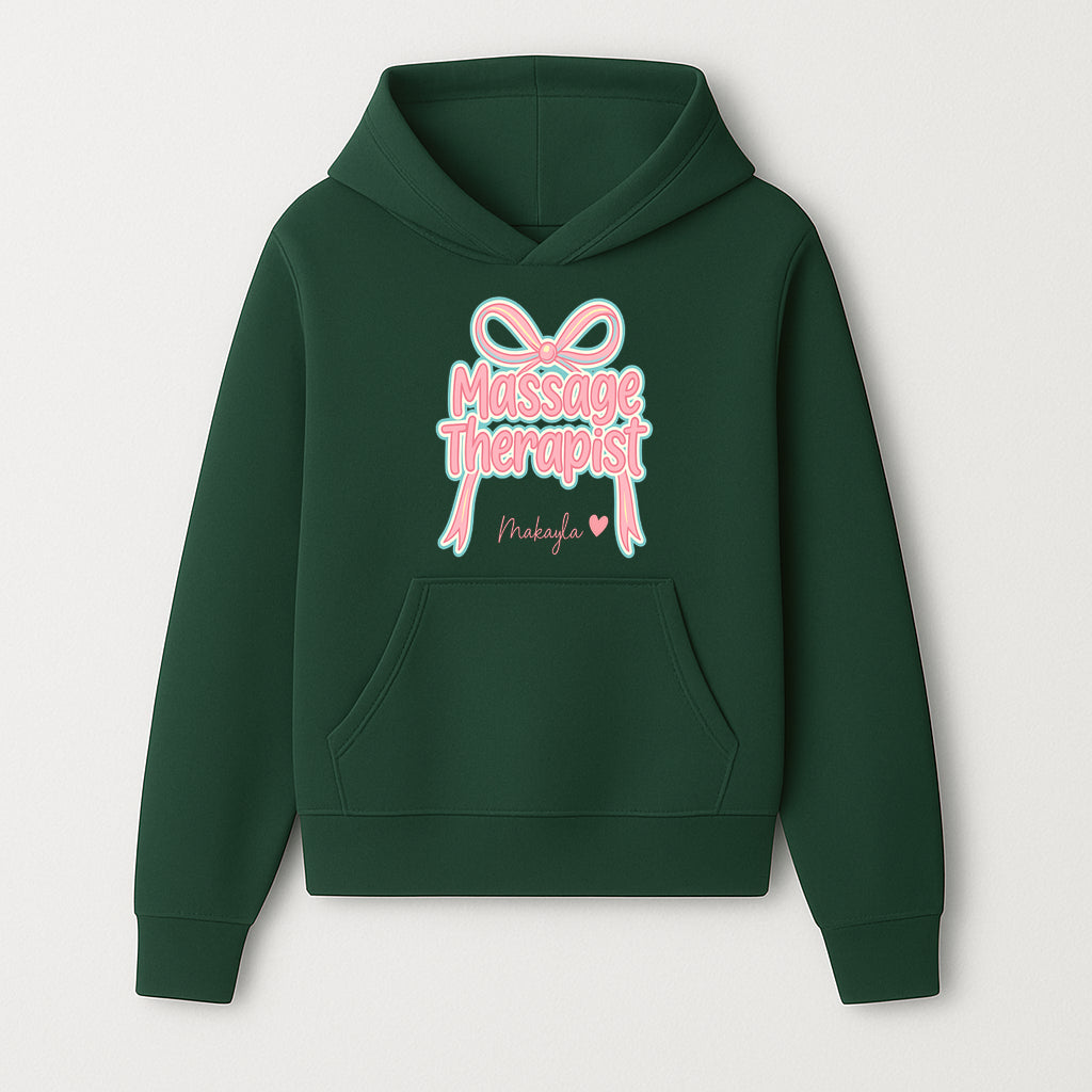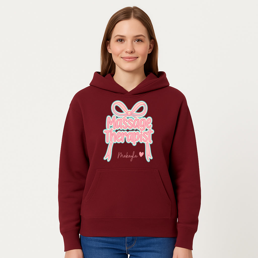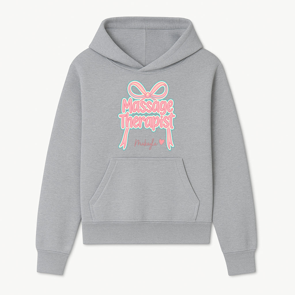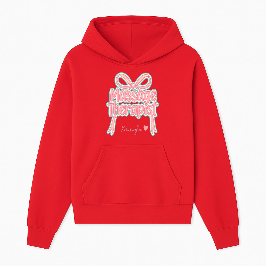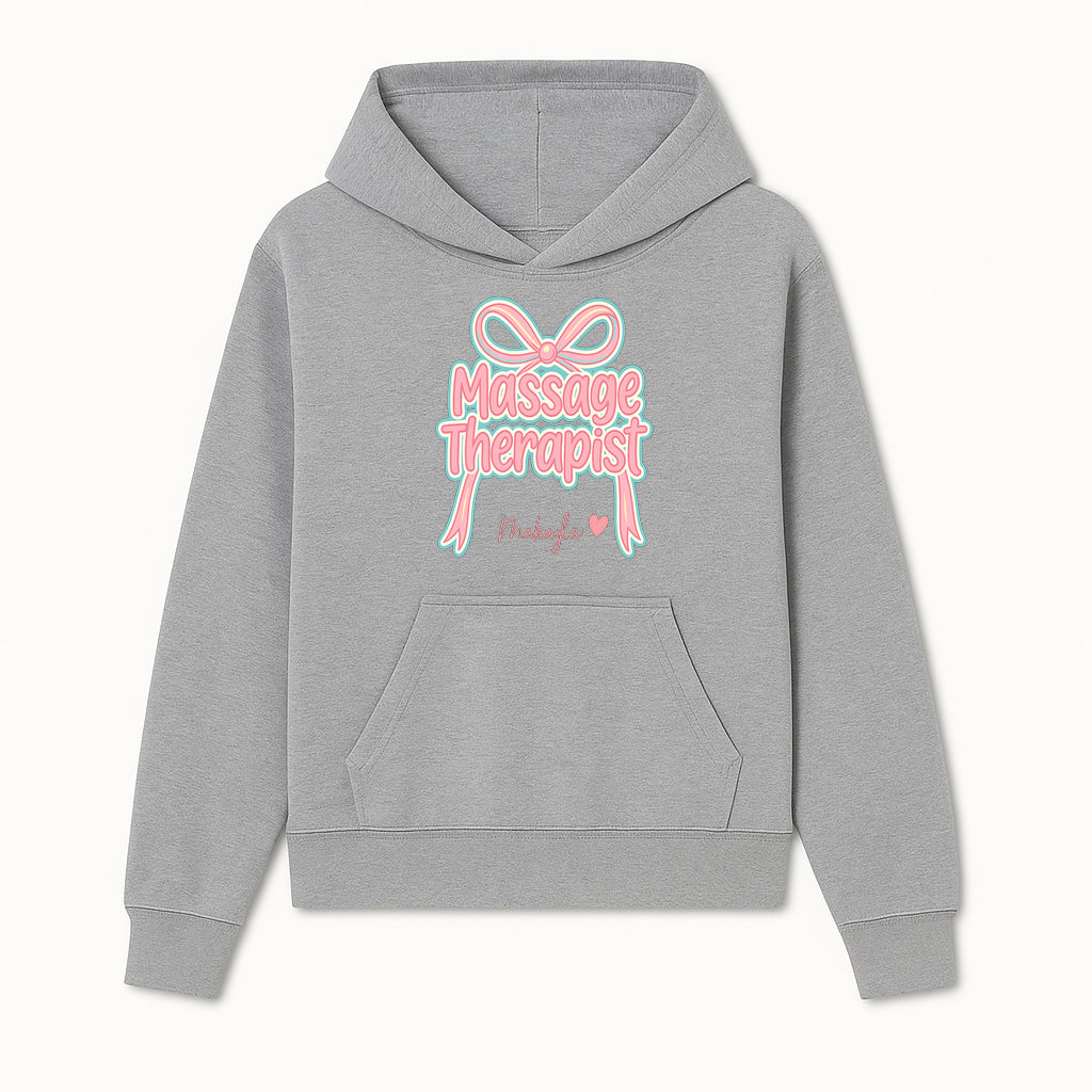 Personalized Massage Therapist Sign with Bow | Custom Name Wall Decor for Spa or Relaxation Room | Pink Neon Aesthetic - Hoodie