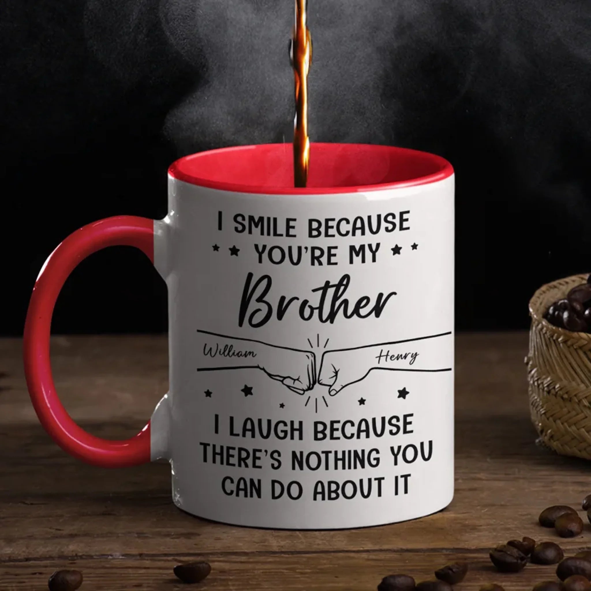 Custom Mug - Personalized Birthday Gifts For Mom, Dad, Brother, Sister - I Smile Because You're My Brother