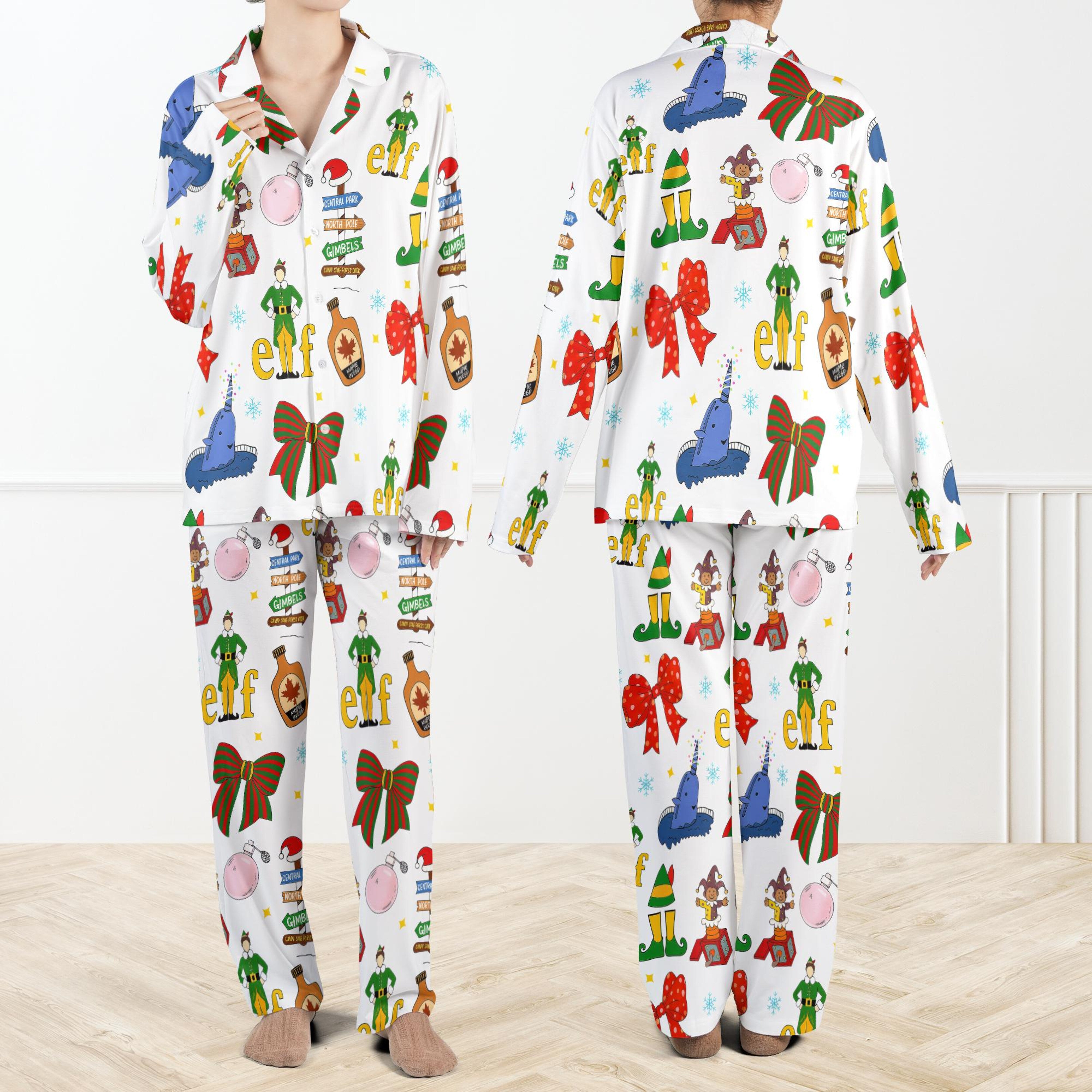 Coquette Elf Christmas Pajama Set For Women Elf Christmas Pajamas Set Buddy The Elf Pjs Funny Holiday Sleepwear For Family