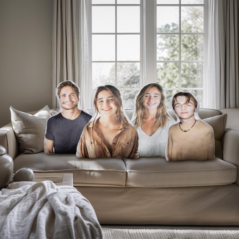 Came in and it doesn't look like the pictures, it has a large white outline around the outside of my cat and it doesn't look dumb and funny, it just looks like a regular pillow with a cat picture pasted on it. The quality is nice though and has yet to sustain any damages after 3 months.