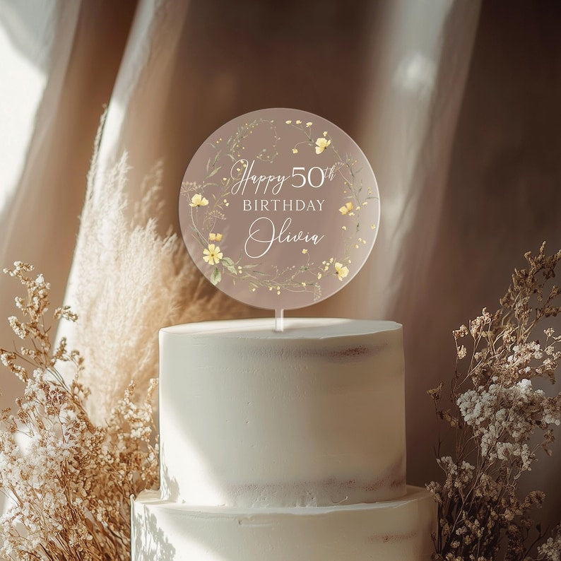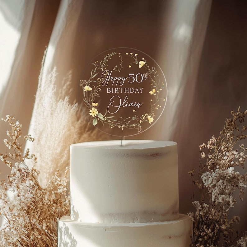 Personalized Birthday Acrylic Cake Topper, Happy Birthday Cake Topper with Name, 30th 40th 50th Birthday Decor, Anniversary Cake Topper
