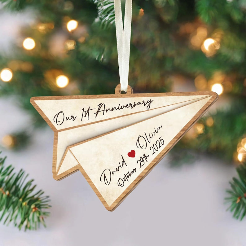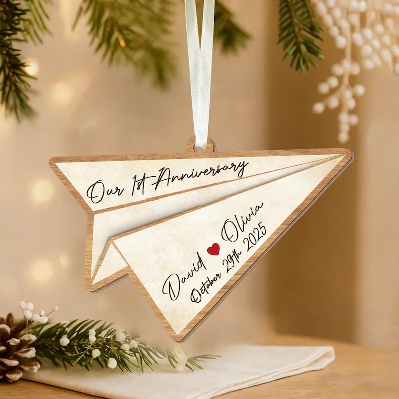 Personalized Anniversary Ornament: 1st Wedding Anniversary Gift, Paper Anniversary Keepsake