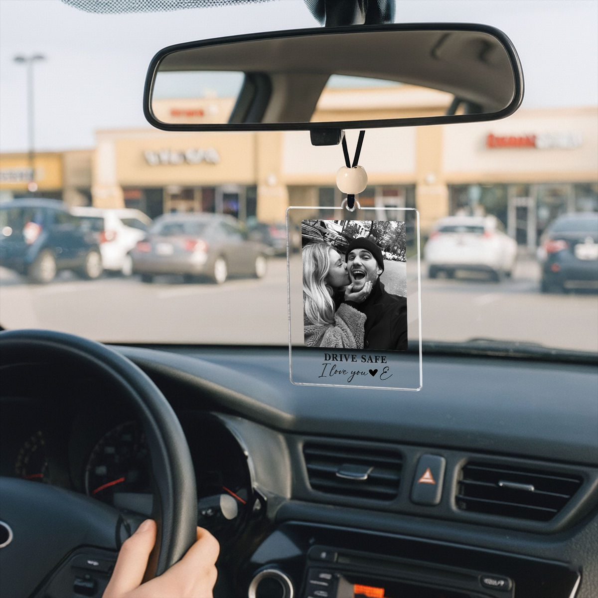Valentine's Day - Personalized Photo Car Hanging Ornament, Valentine's Day Gift for Him, Gift for Her, Couple Gift, Couple Photo - Personalized Photo Acrylic Car Hanger with Beaded String