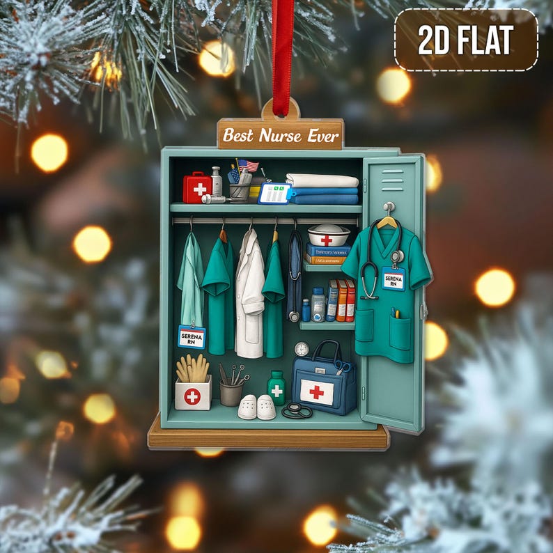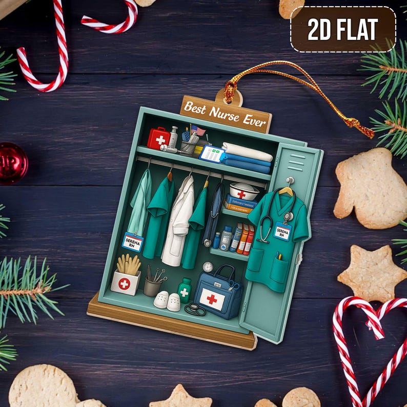 Personalized Nurse Locker Christmas Ornament, Flat 2D RN Scrubs Ornament for Nurse Appreciation, Best Nurse Ever Holiday Gift Idea