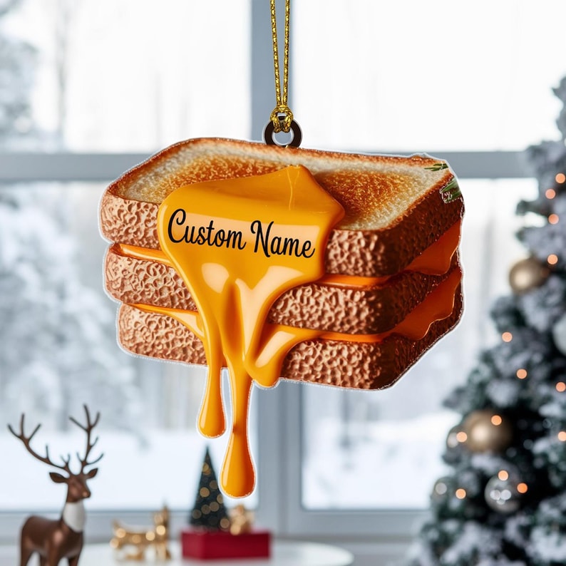 Custom Grilled Cheese Sandwich Christmas Ornament, Tree Hanging Decor, Flat 2D Acrylic, Personalized Food Lover Gift for Him Holiday 2025