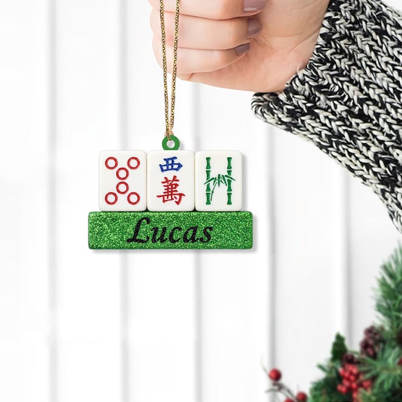 Custom Mahjong Tile Ornament with Name Personalized Bamboo and Bird Design Keepsake
