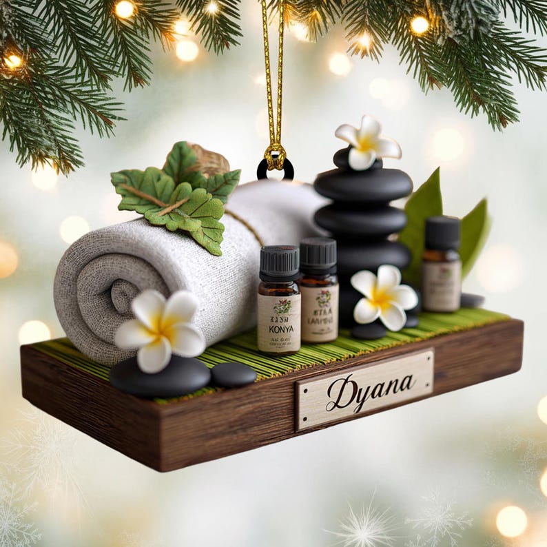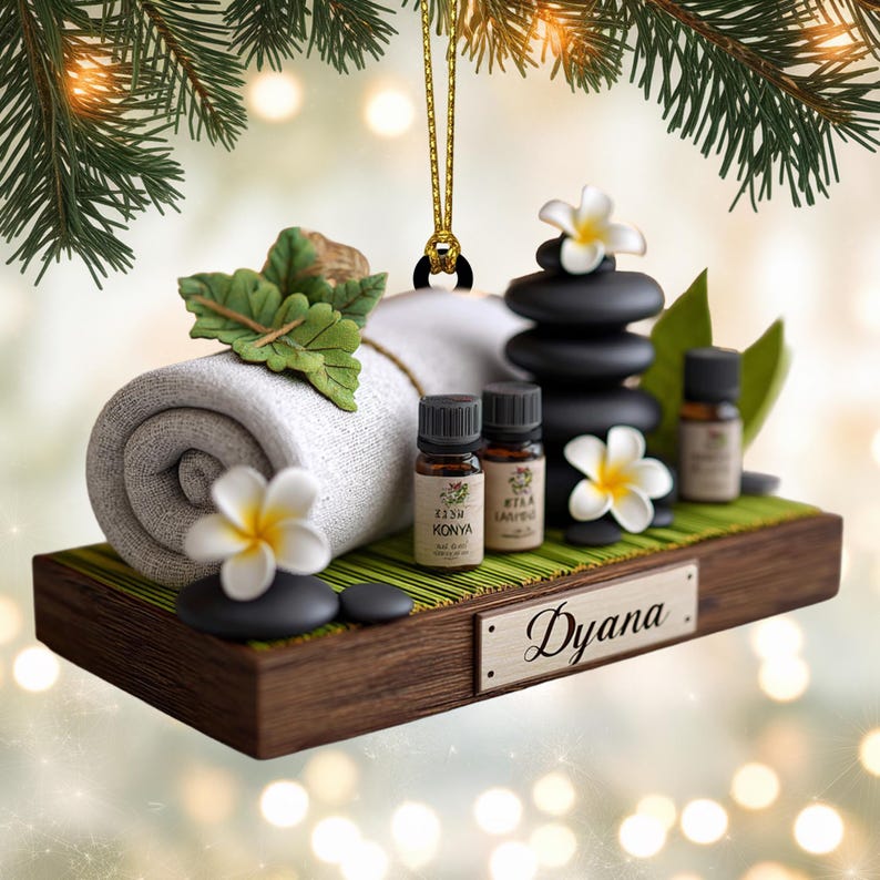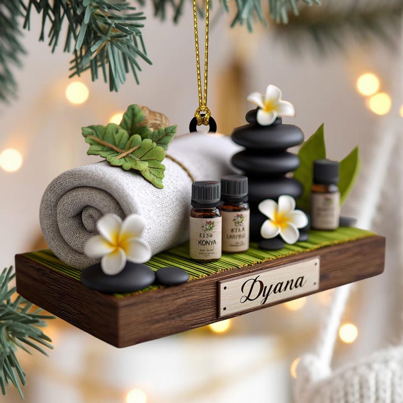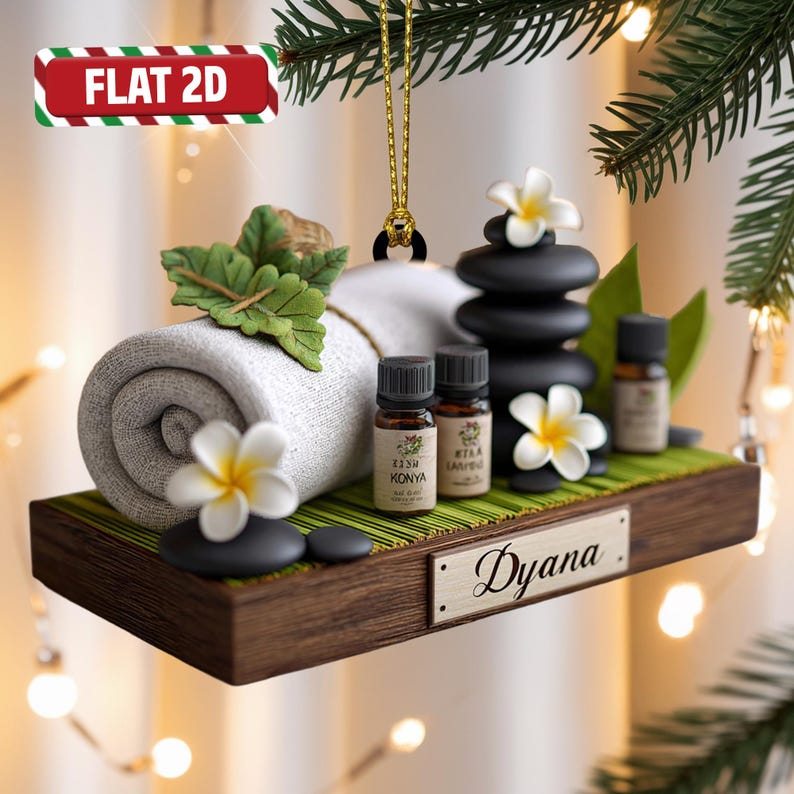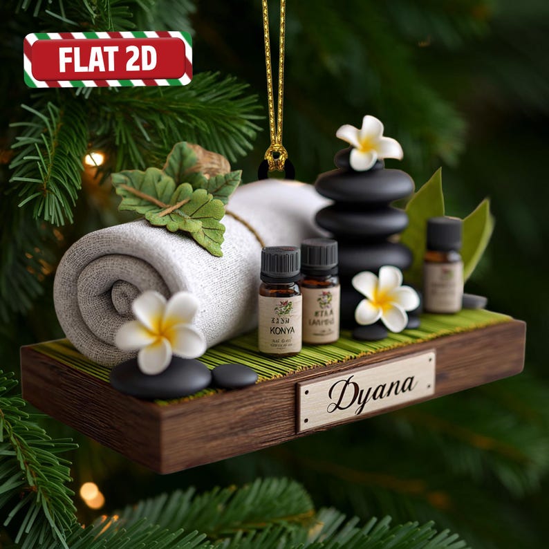 Custom Spa Christmas Ornament, Tree Hanging Decor, Flat 2D Acrylic, Personalized Relaxation Gift for Wife Holiday Keepsake 2025