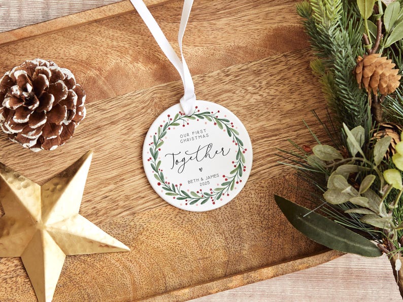 Our First Christmas Together Ornament 2025 Personalised Couple Keepsake | Custom Ceramic Decoration