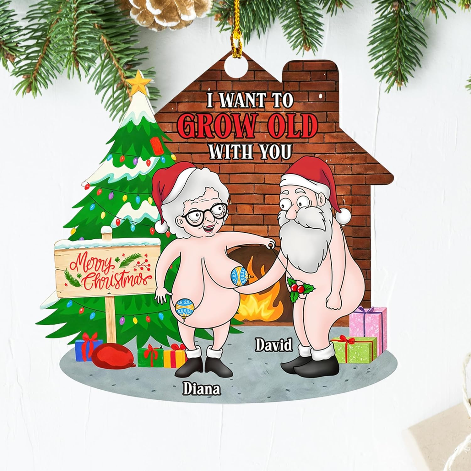 Personalized Funny Couple Ornament - I Want to Grow Old with You Gift for Him, Her - Newly Anniversary Wedding Married Keepsake Gift for Older Couples Husband Wife Mr Mrs Hanging Xmas Tree Decor