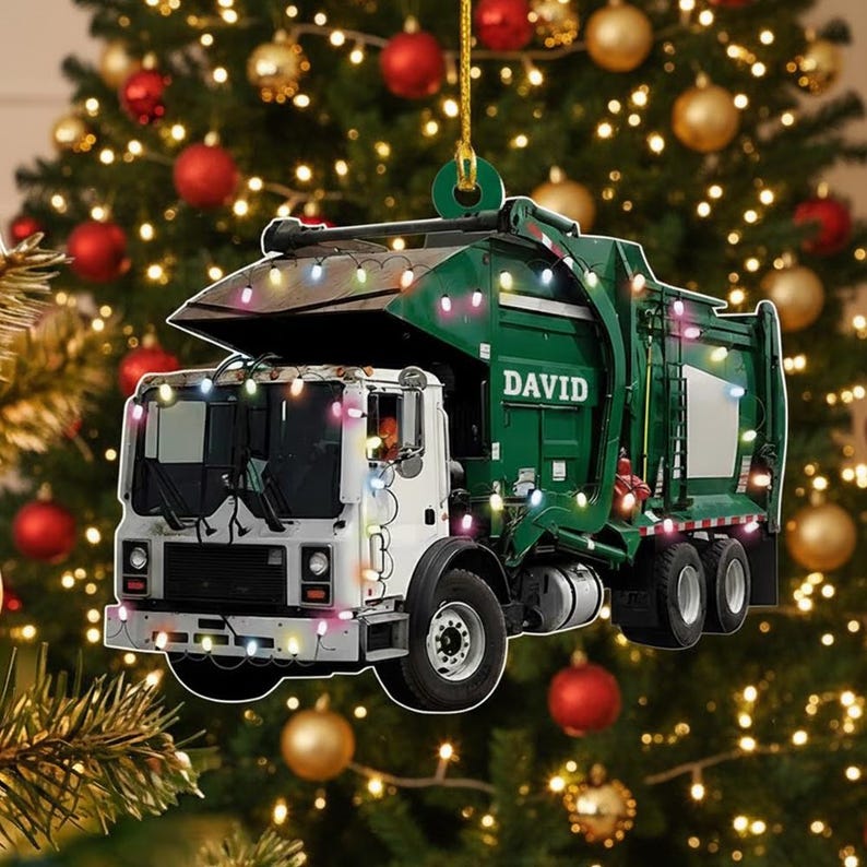 Personalized Garbage Truck Christmas Ornament: Custom Sanitation Worker Gift 2D FLAT