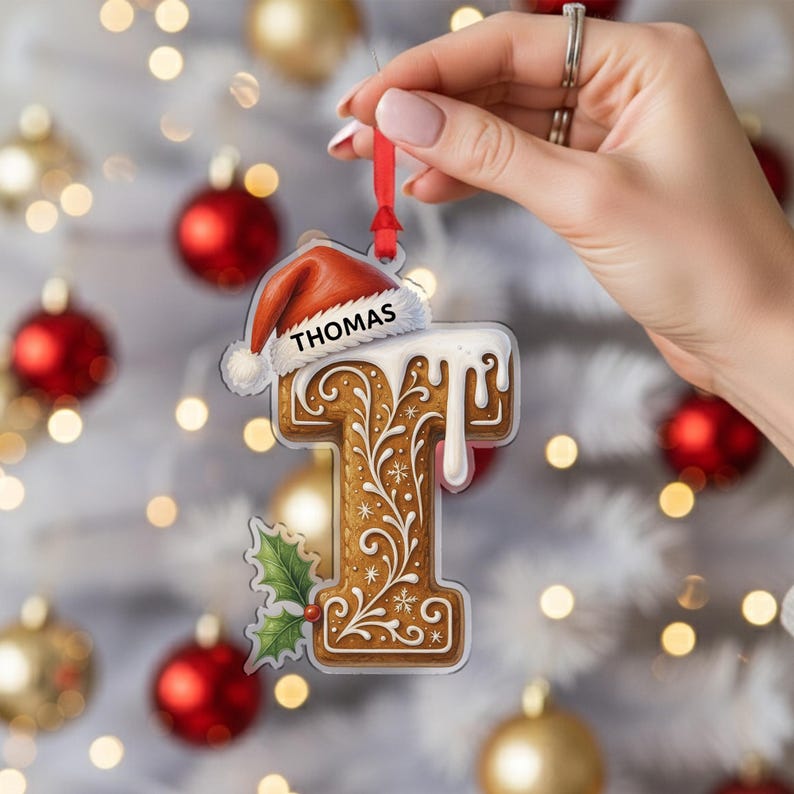 Personalized Gingerbread Letter Acrylic Ornament: Custom Name Christmas Tree Decor