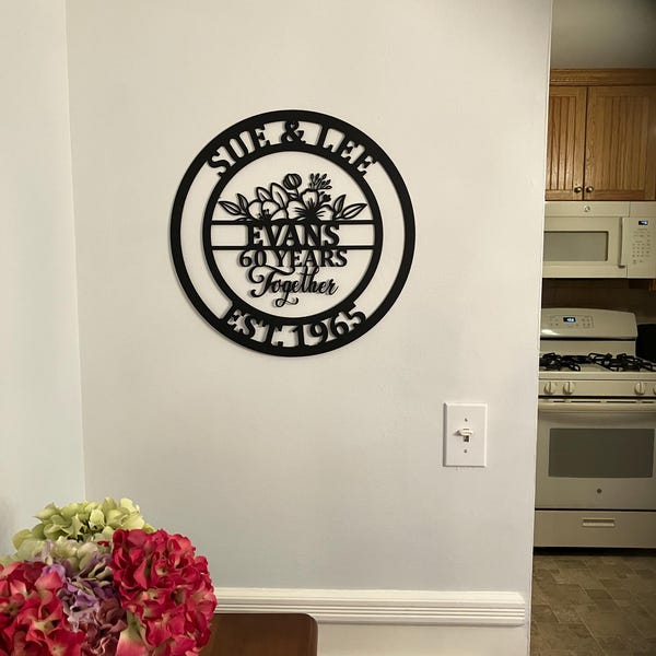 Custom 50 Years Together Floral Anniversary gift Metal Sign, 25 years together, 10 years, any year personalized name sign, metal anniversary