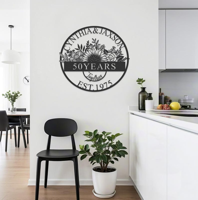 Custom 50th Anniversary Metal Sign,Personalized 50th Wall Art,Golden Anniversary,Sunflower Wedding Sign,Anniversary Gift,Gift For Couple