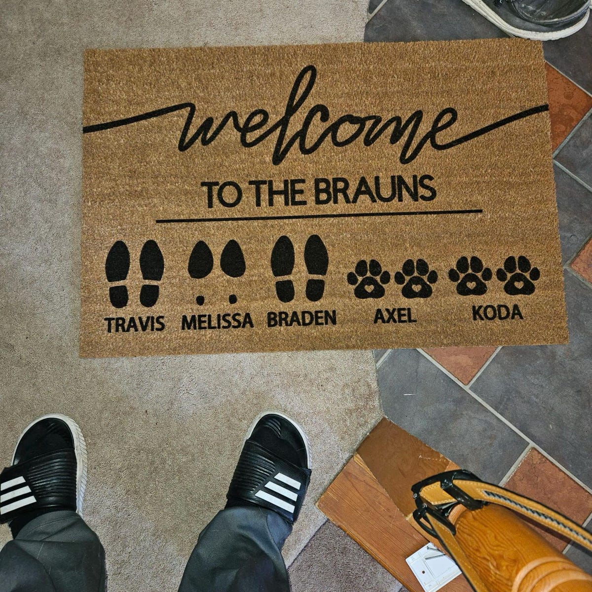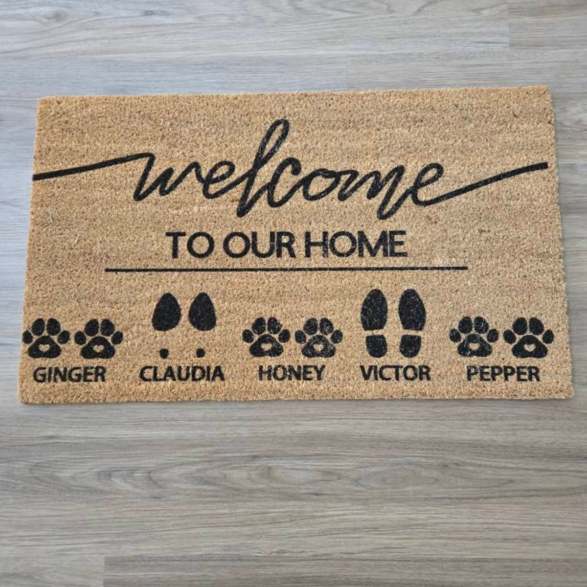 Mat is very nice quality. Got this made up for my daughter for christmas. She has 4 dogs who are her kids. Its is a lighter weight mat so I will recommend she uses it in front of her kitchen sink, that way she will see it more often and can enjoy it more. We have strong winds here and could possibly be blown away.