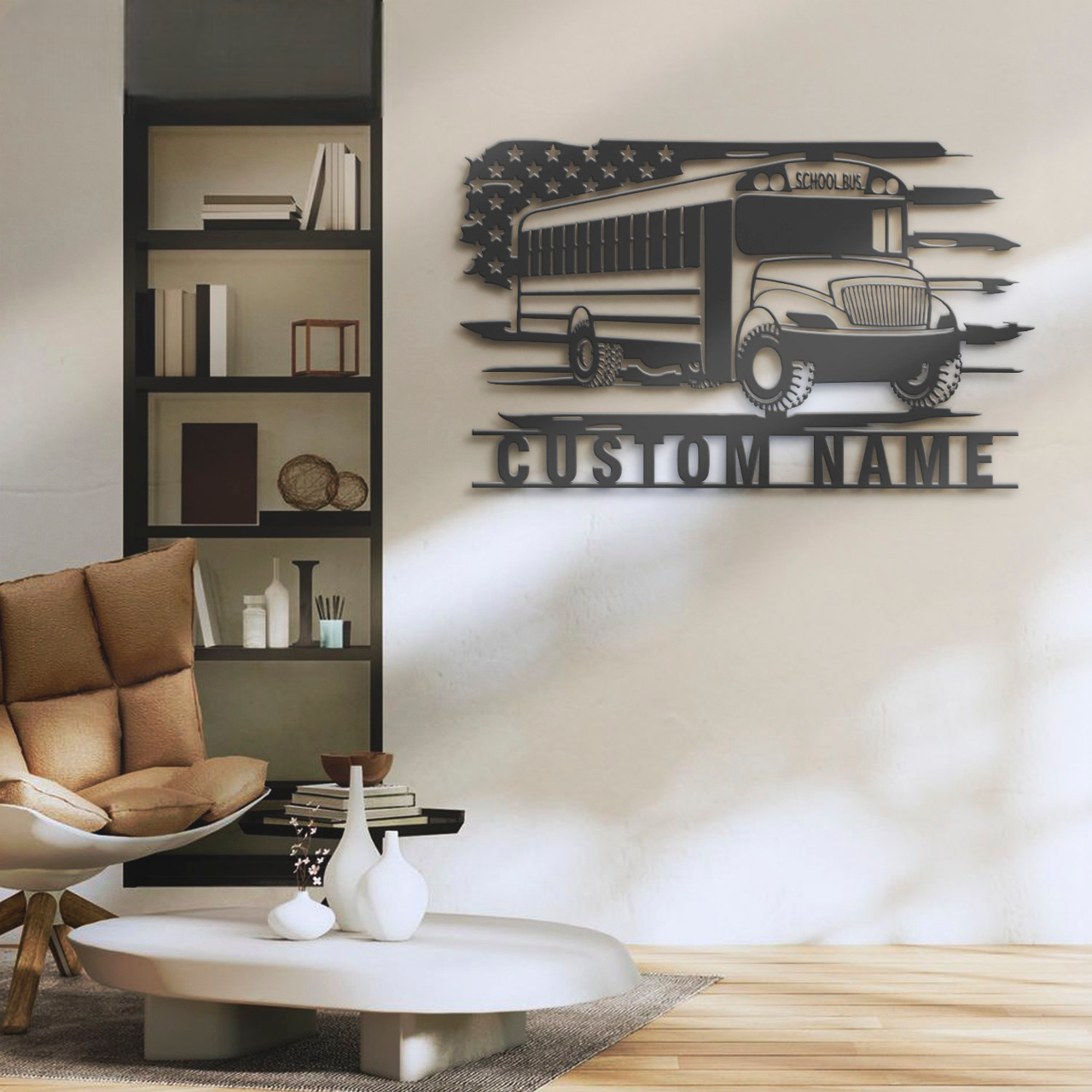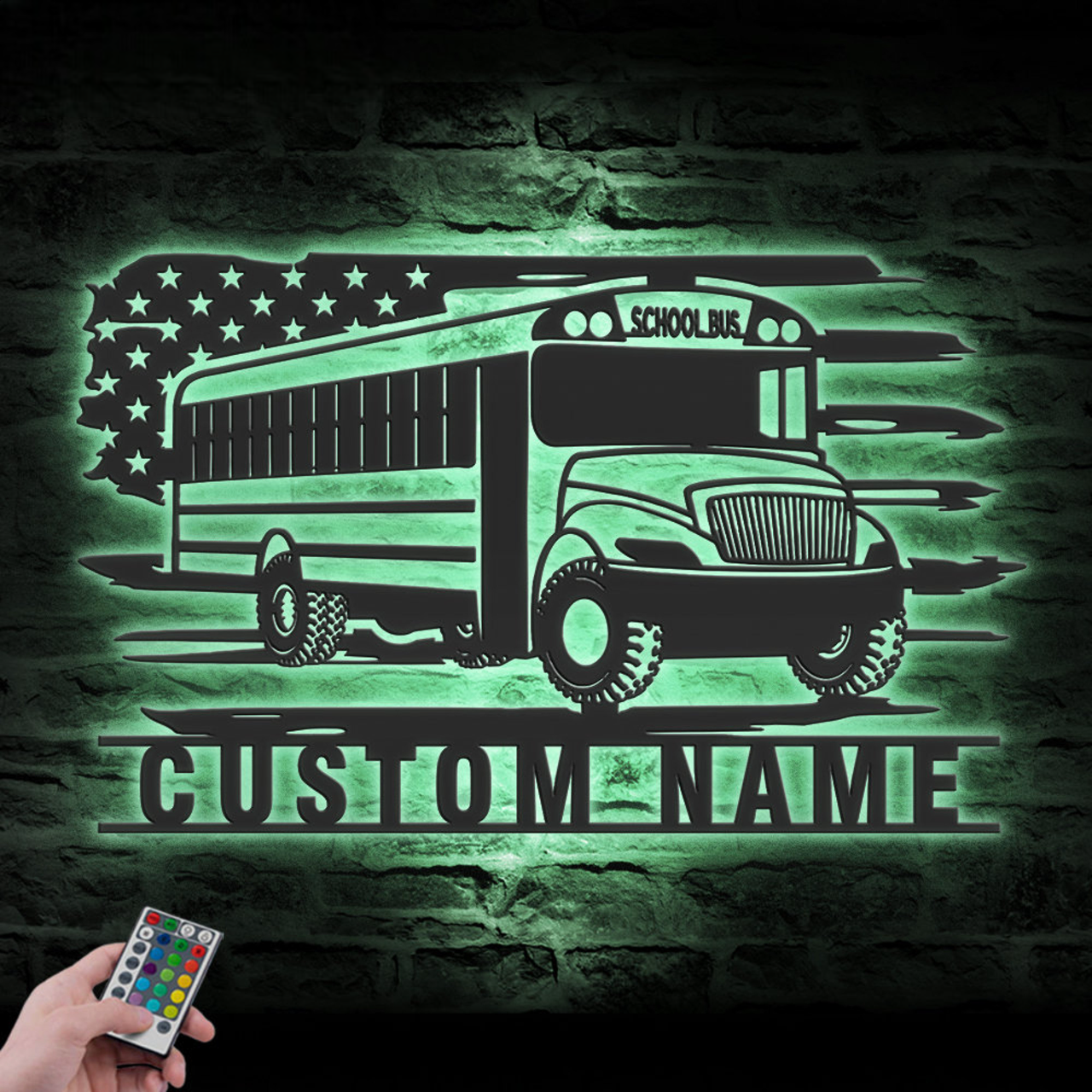 Custom US School Bus Metal Wall Art LED Light Personalized Bus Driver Name Sign Home Decor Back To School Decoration Birthday Christmas Gift