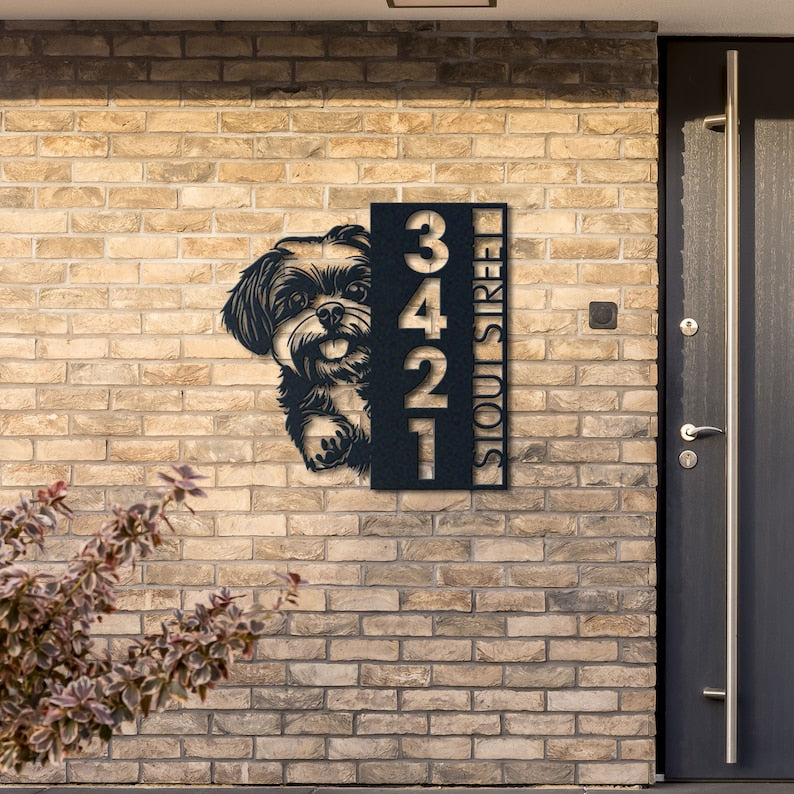 Dog House Number, Dog Address Sign, Shih Tzu Sign, Vertical House Number Plaque for Outdoor Use