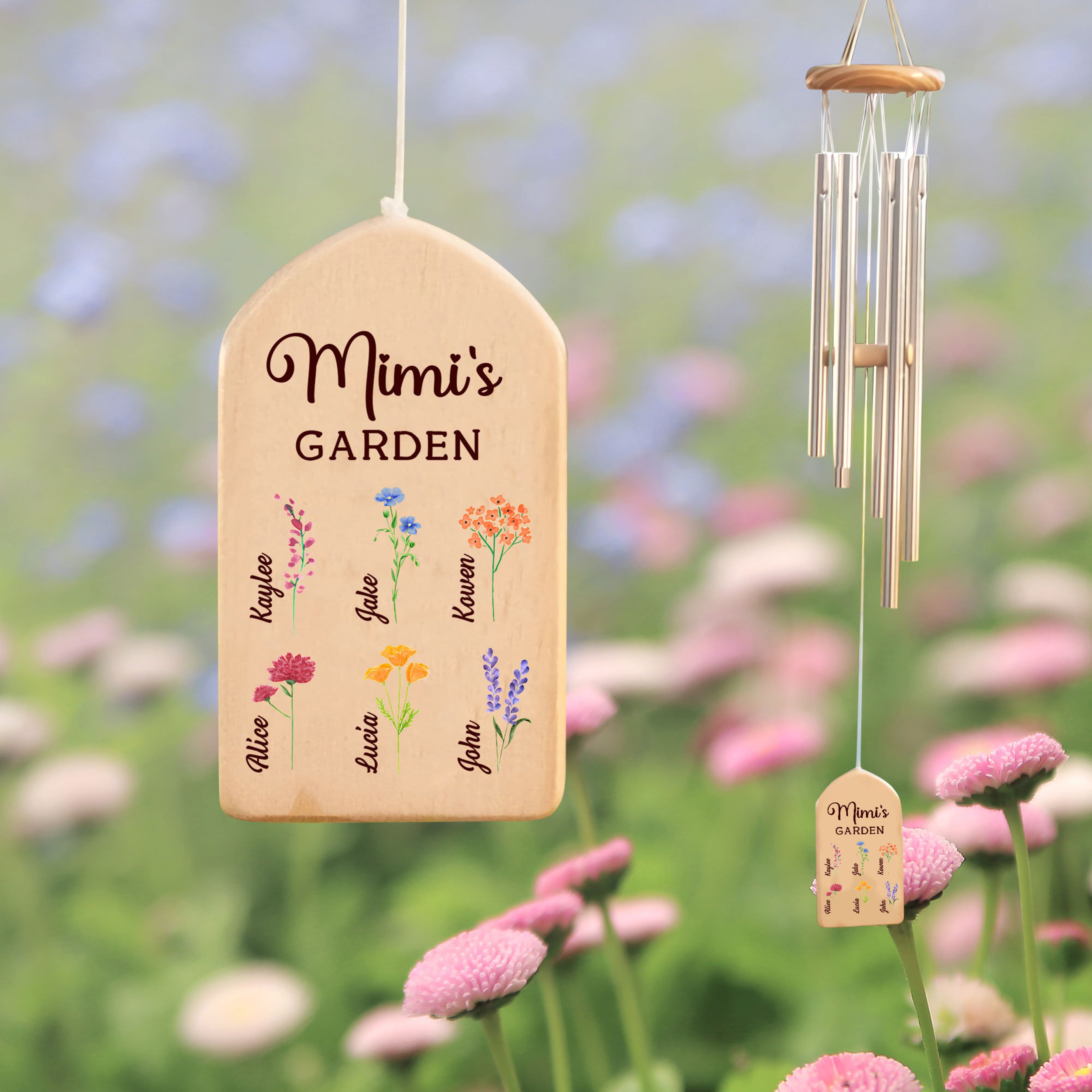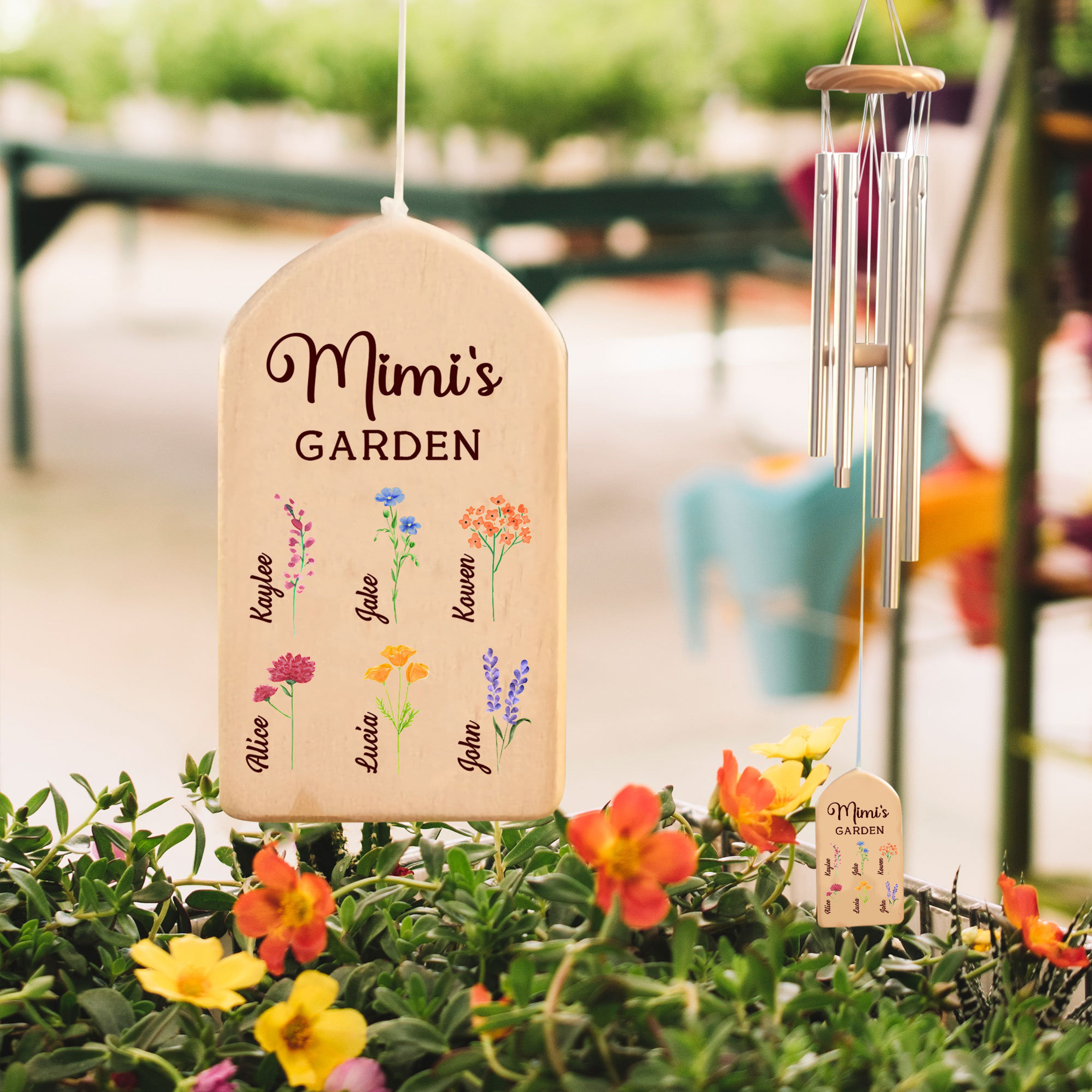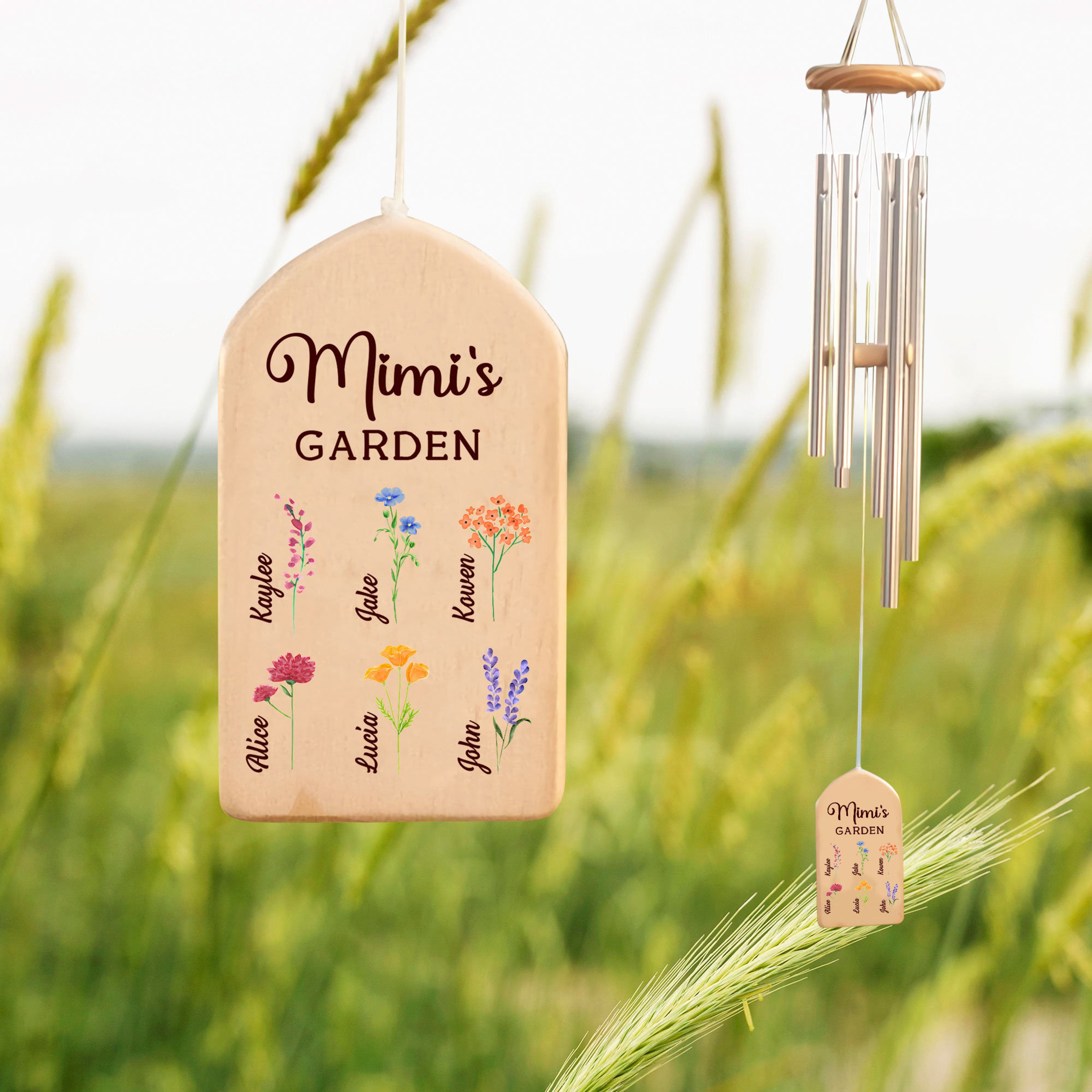 Grandma Mom's Garden Birth Month Flower With Kid Name - Personalized Windchime - Gift For Mom, Grandma, Mother's Day, Birthday Gift
