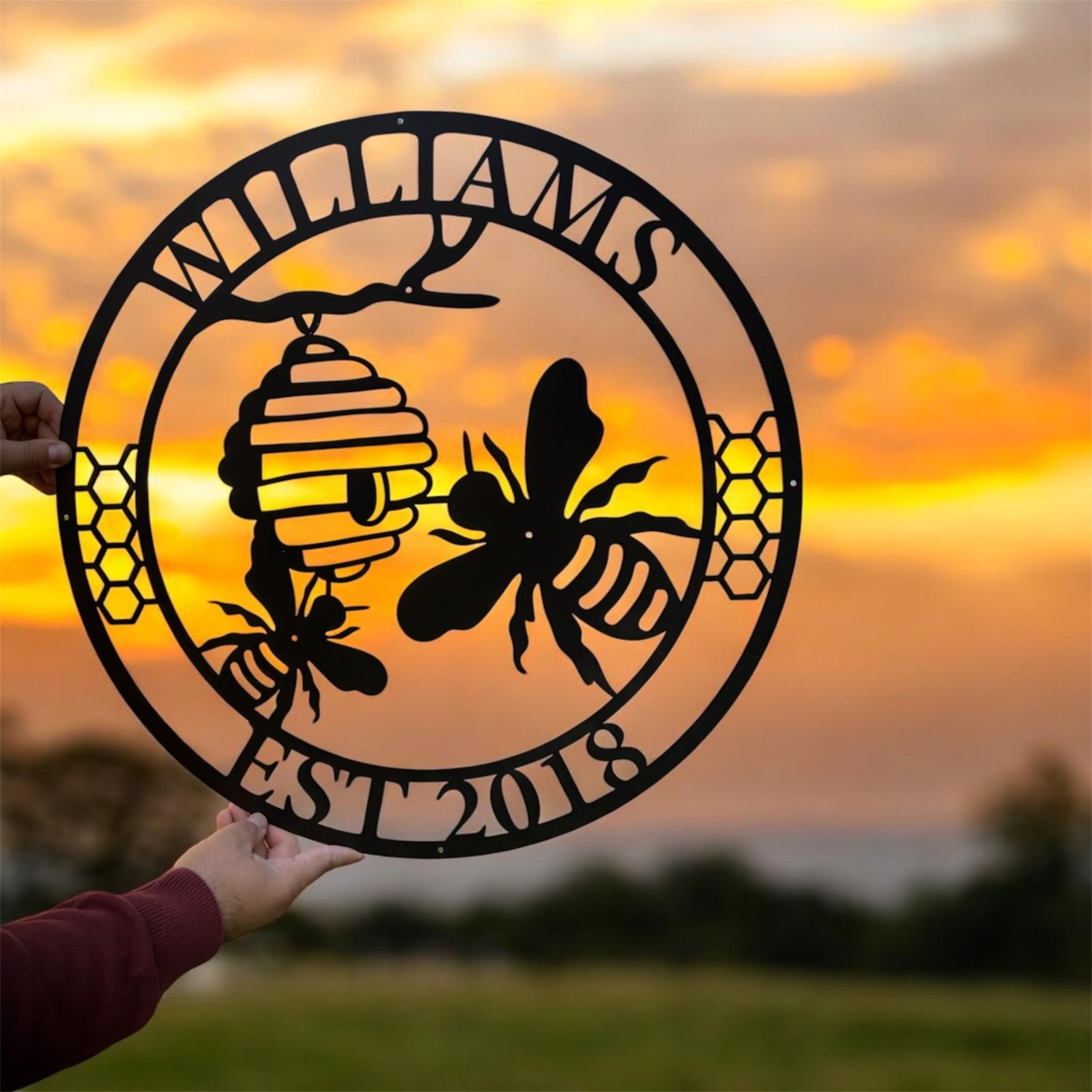 Personalized Honey Bee Metal Sign, Custom Garden Decor, Beekeeper Gift