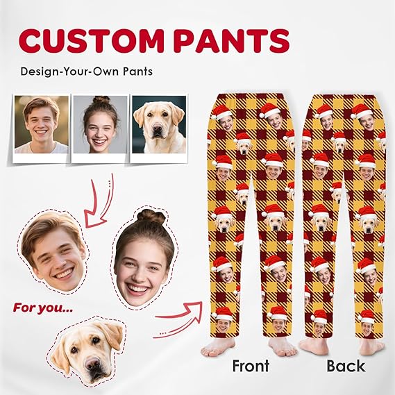 • 📸 Personalized with Your Photo: Upload a favorite photo—we’ll crop the face and turn it into a unique all-over print on cozy pajama pants