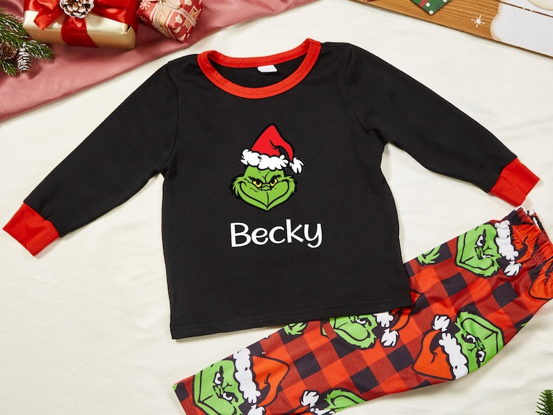 Family Matching Grinch Family Pajamas Personalized Christmas Family Pajamas w/Name, Monogram Christmas Gifts, Xmas Eve Family Matching Pjs