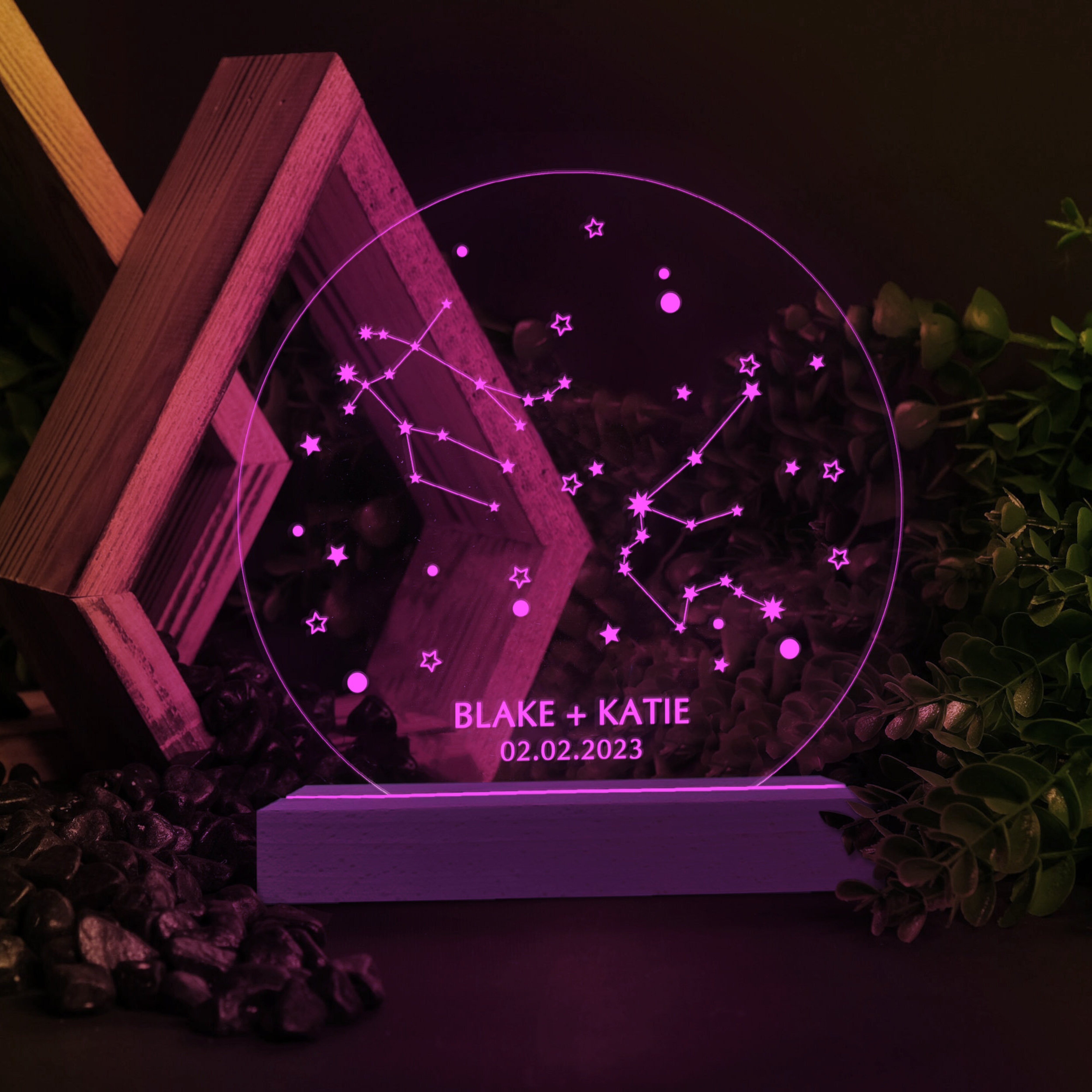 Custom Zodiac Led Light, Valentines Day Gift, Zodiac Night Light, Custom Couples Plaque, Our First Date, Anniversary Plaque, Valentines Gift