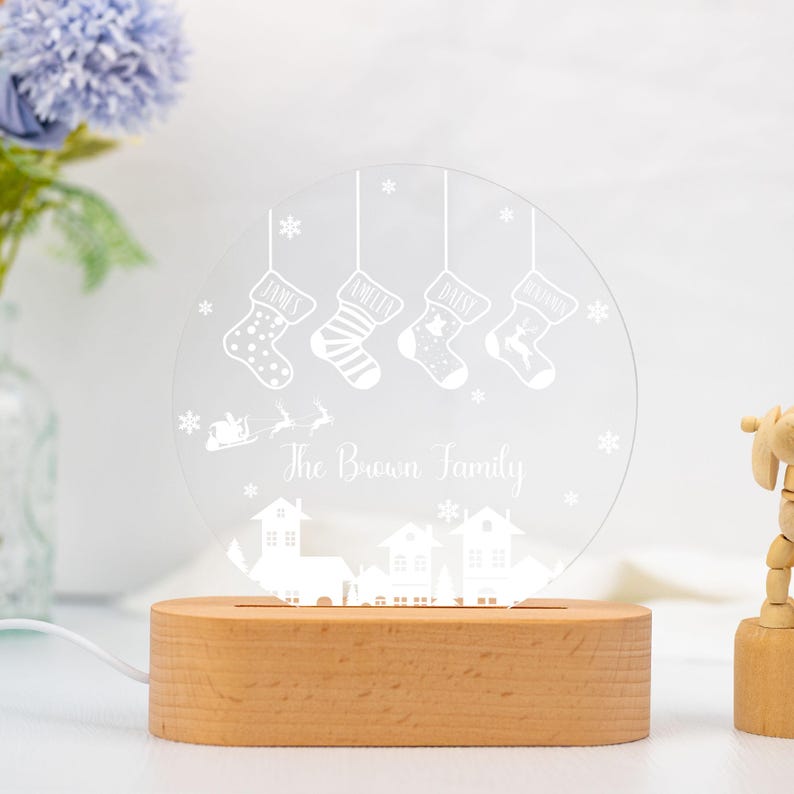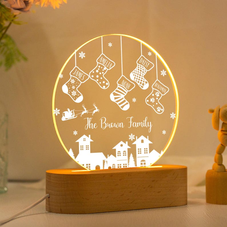 Family of 4 Christmas Night Light,Custom Family Stocking Night Light With Names and Year,New Family Christmas Gift 2024,Family Lamp Light
