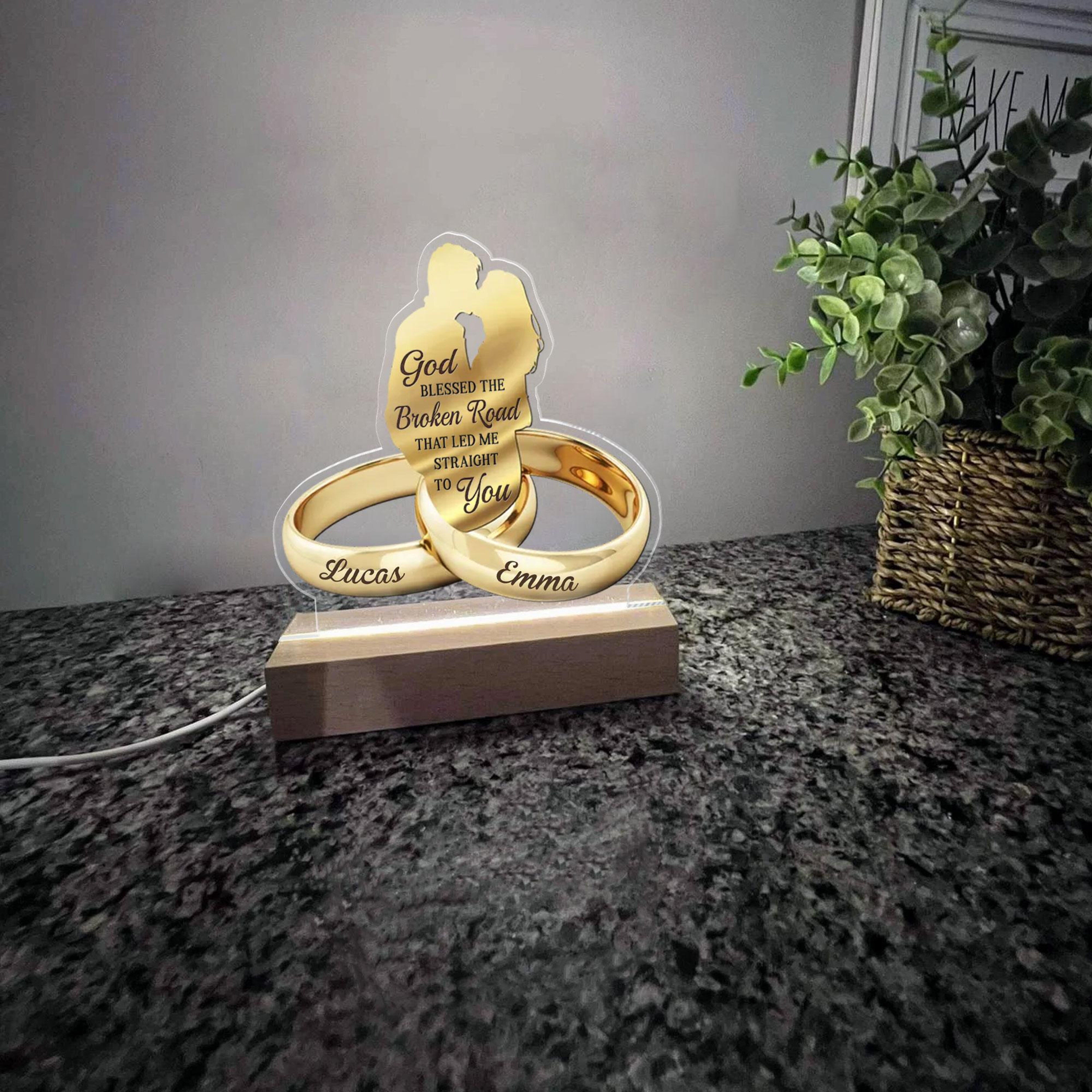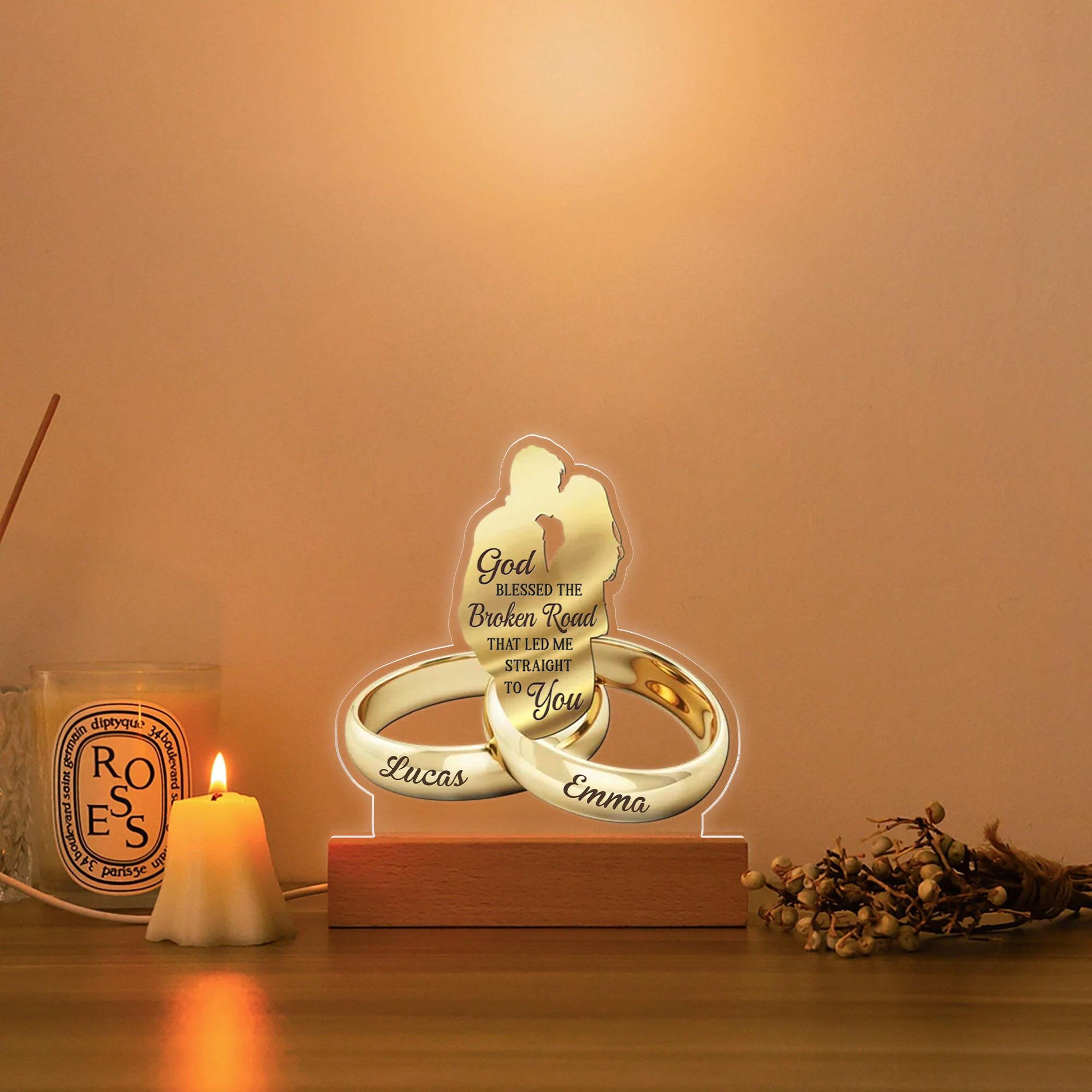 God Blessed The Broken Road That Led Me Straight To You - Personalized 3D LED Light Wooden Base - Gift For Couple, Valentines Gift, Anniversary Gift
