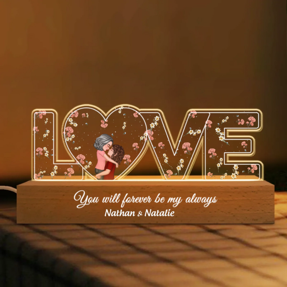 Love Custom Birth Month Flower Romantic Couple - Personalized 3D LED Light Wooden Base - Valentine's Day Gift, Anniversary Gift For Couple