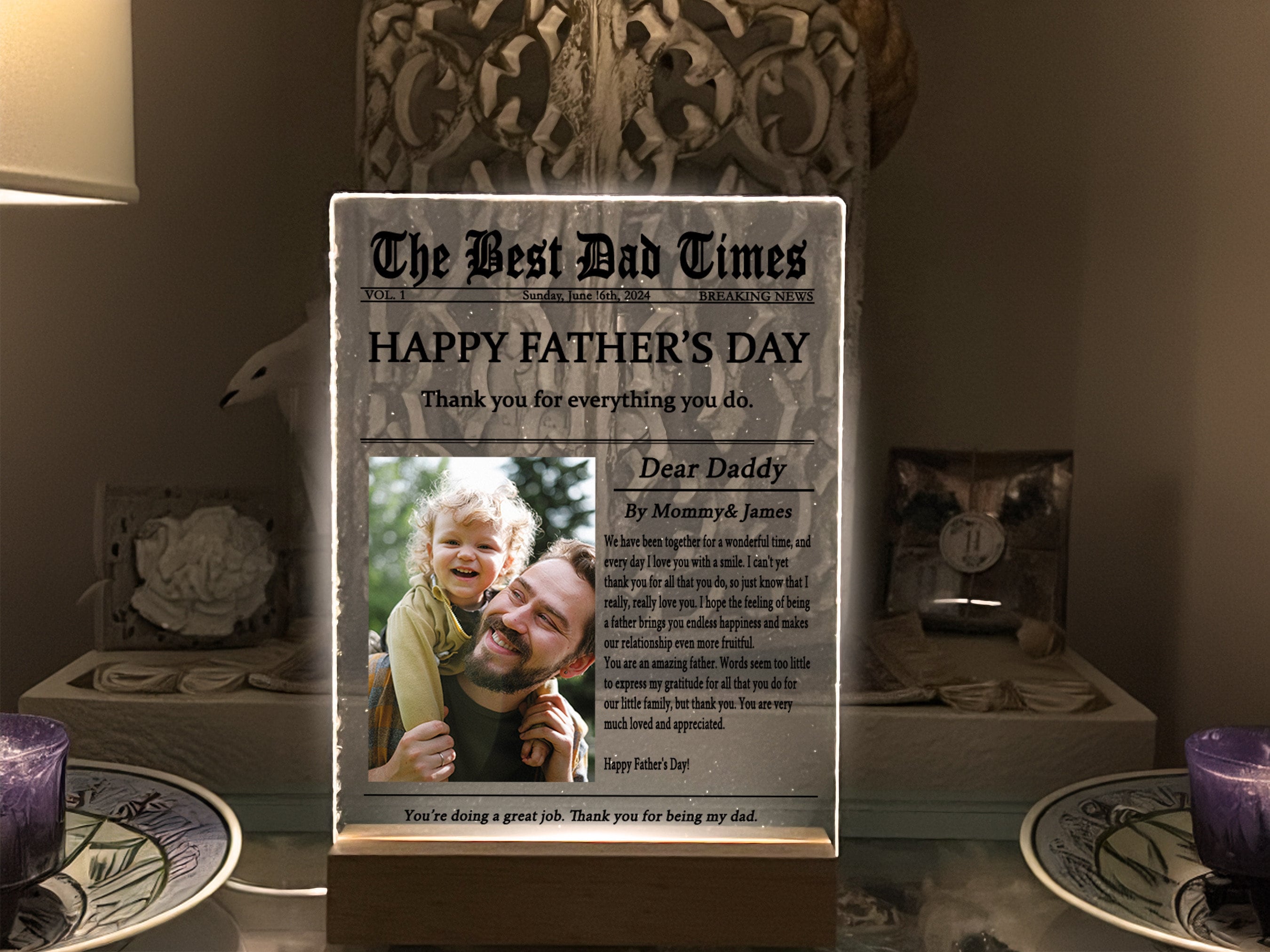 Personalized Night Light Gift for Father's Day, Custom Photo Collage LED Light for Home Decor, First Time Dad Gift, Newspaper design