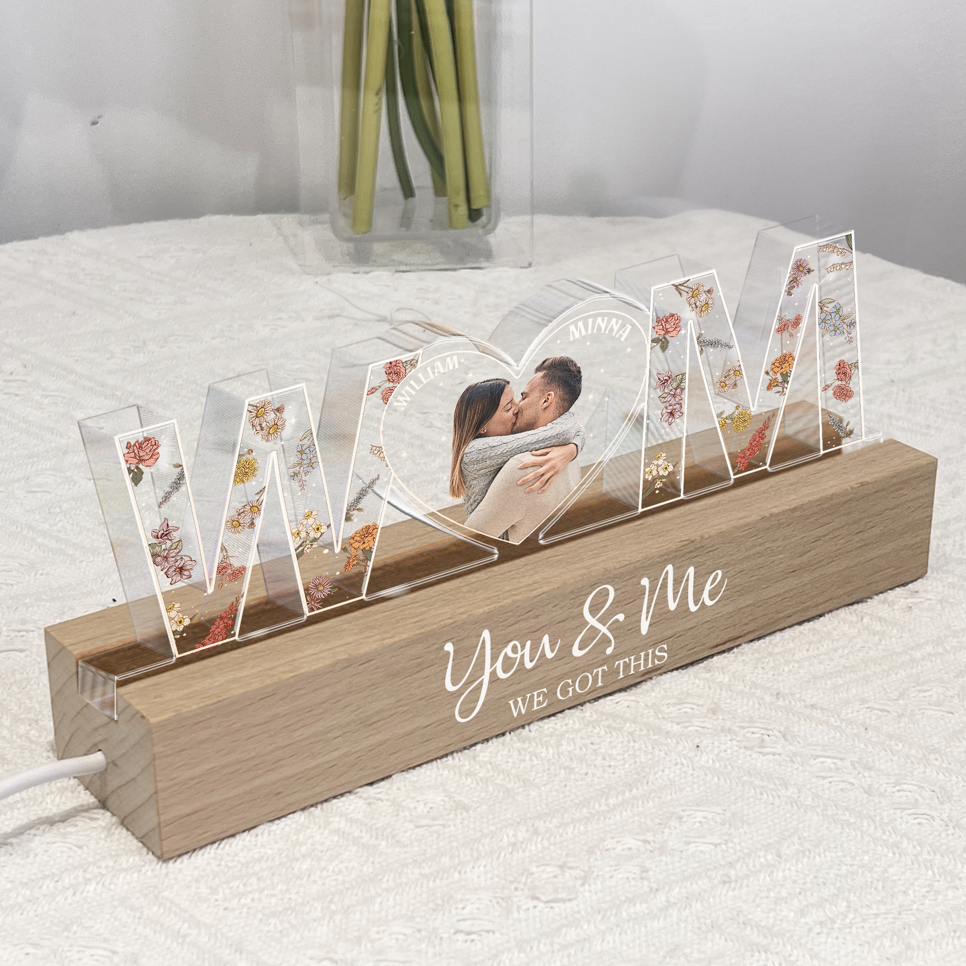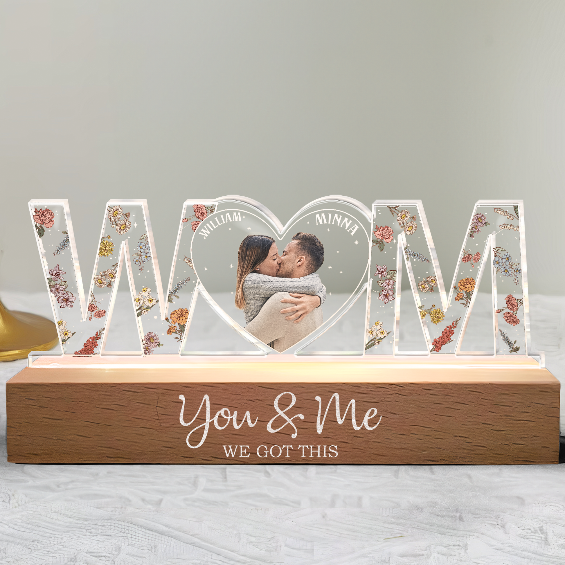 My mom loved this as her gift. I loved the color change and the way that names can go onto the frame. It is beautiful and amazing.