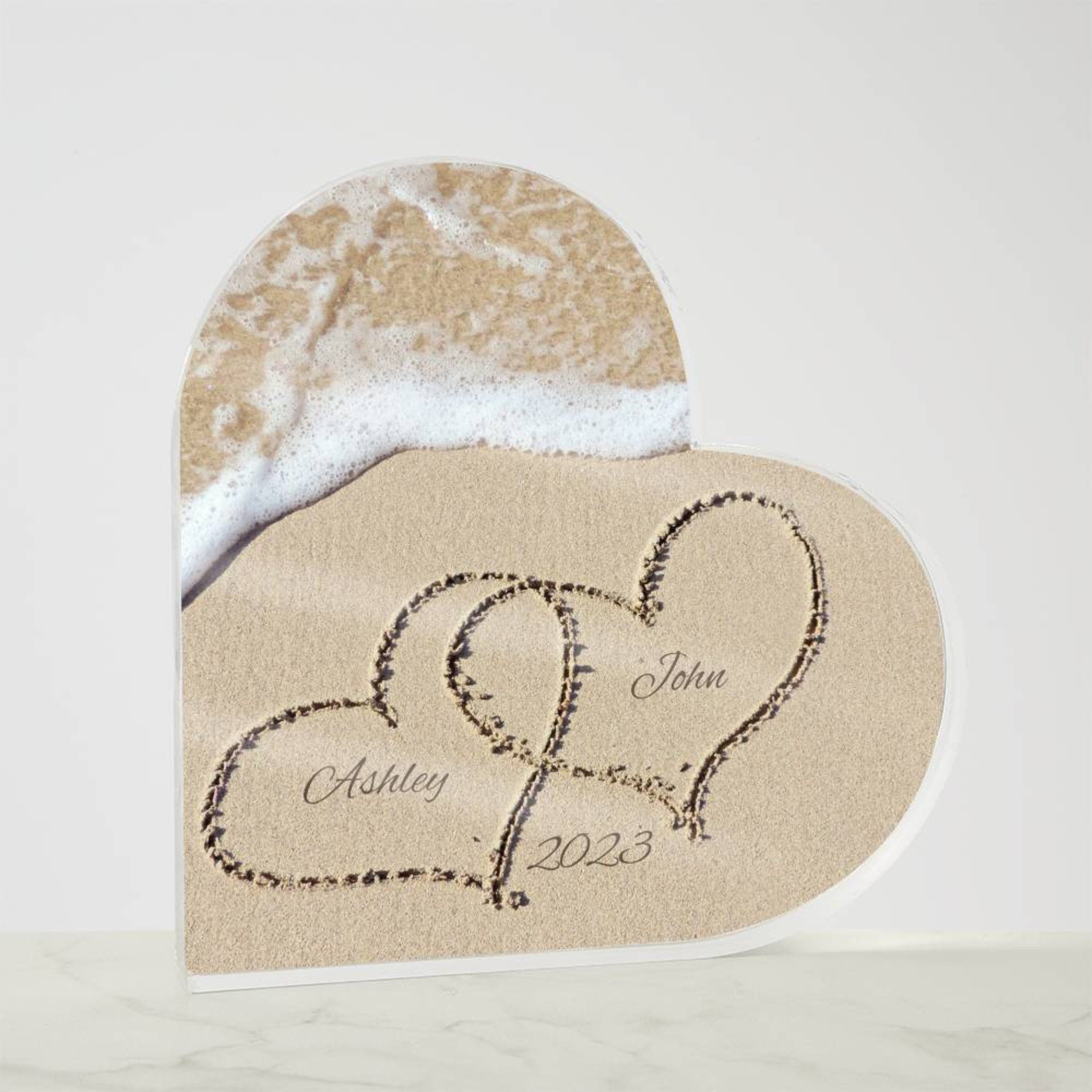 Name in the Sand, Beach Art, Beach Valentine, Beach Wedding Gift, Heart Plaque, Wedding Keepsake, Couple Gift