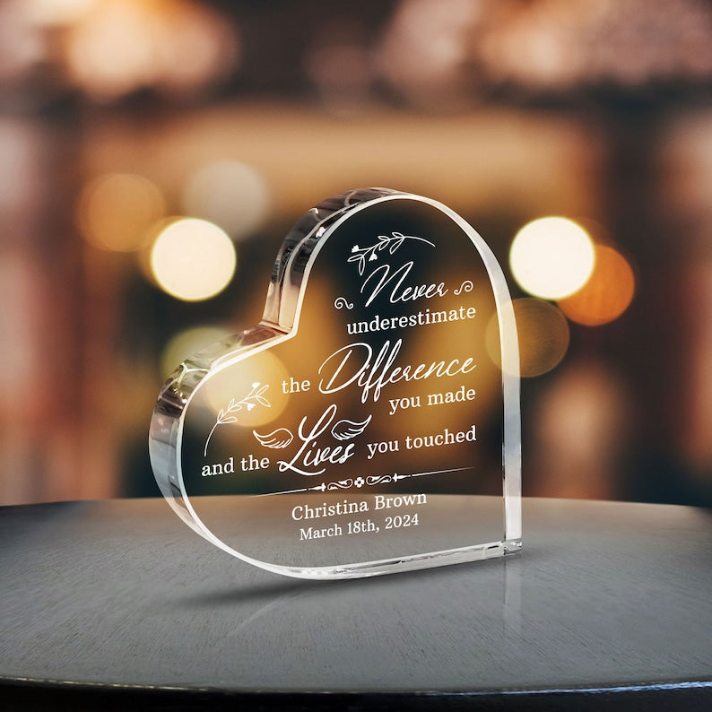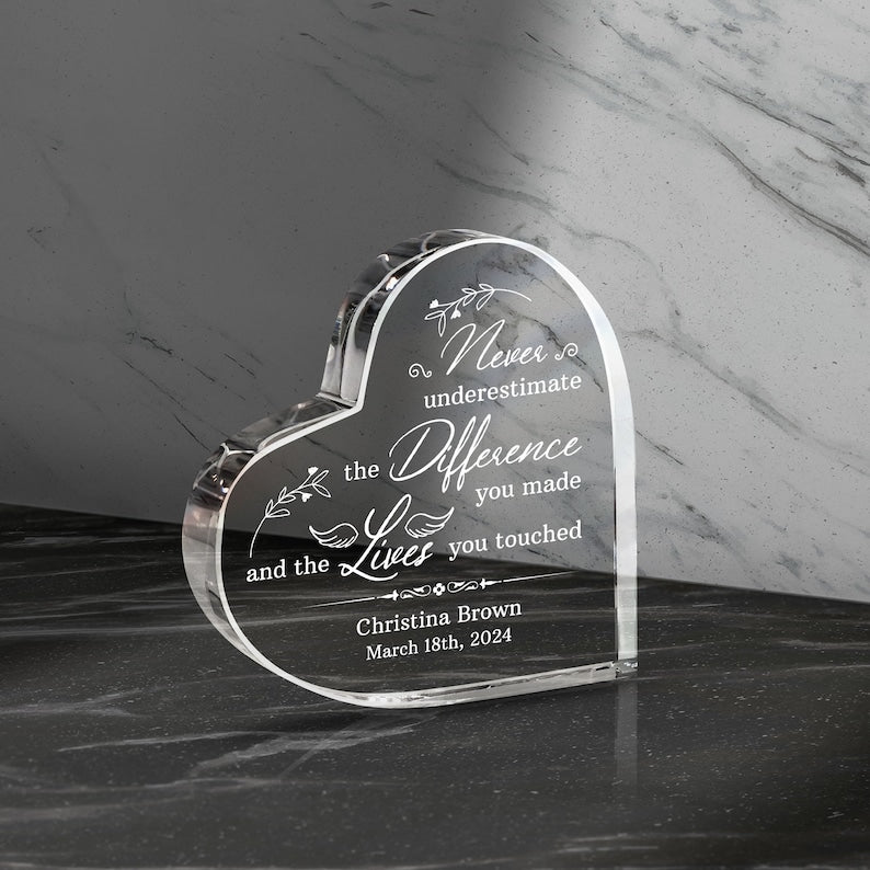 Our Heart Shaped Acrylic Plaque is a perfect gift for your loved one at Christmas, Birthday, Anniversary, Wedding, Mother's Day, Valentines Day, Teachers Day and any Special Moments.