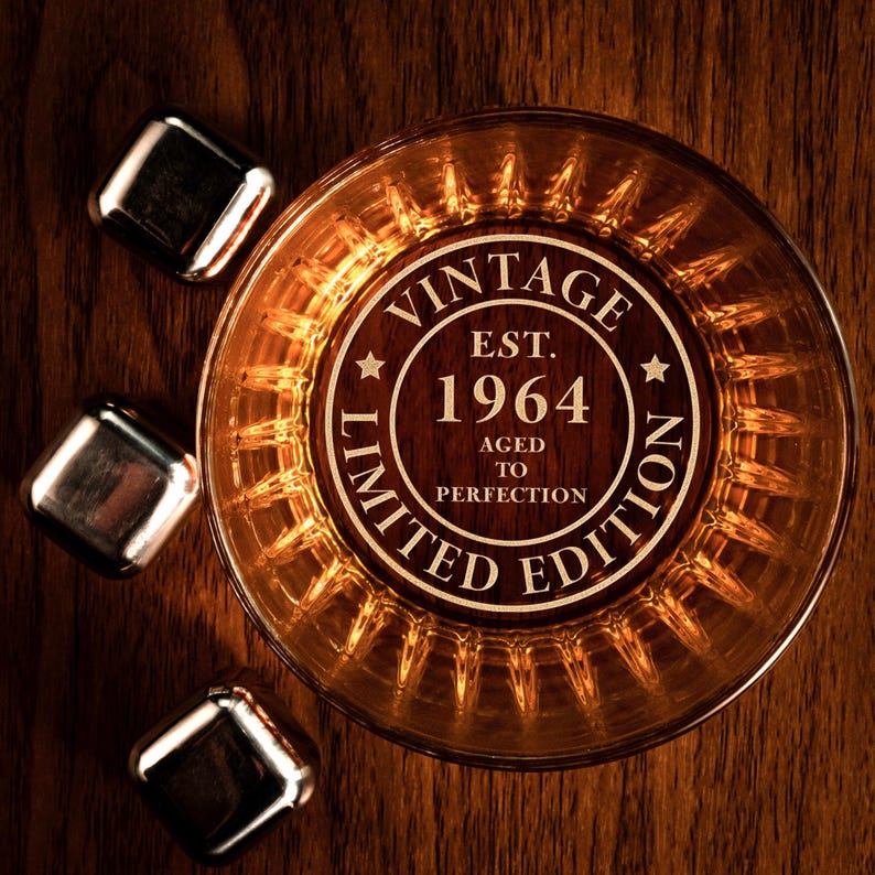 Custom 60th Birthday Whiskey Glass - Old Fashioned Rock Glass Birthday Gifts for Dad