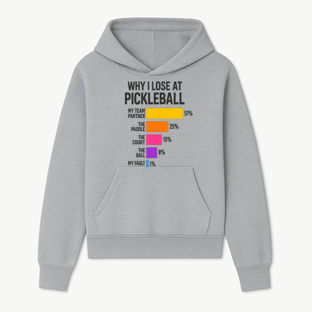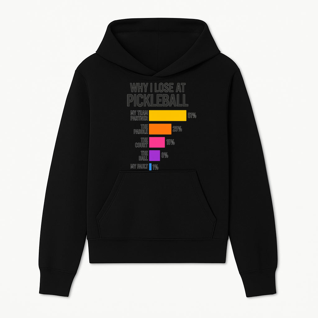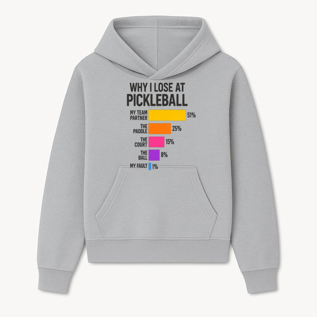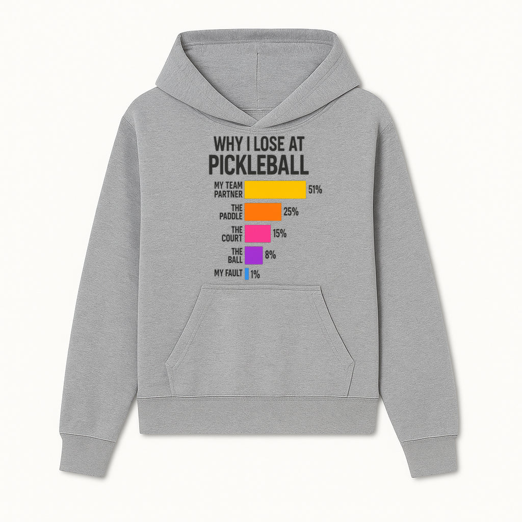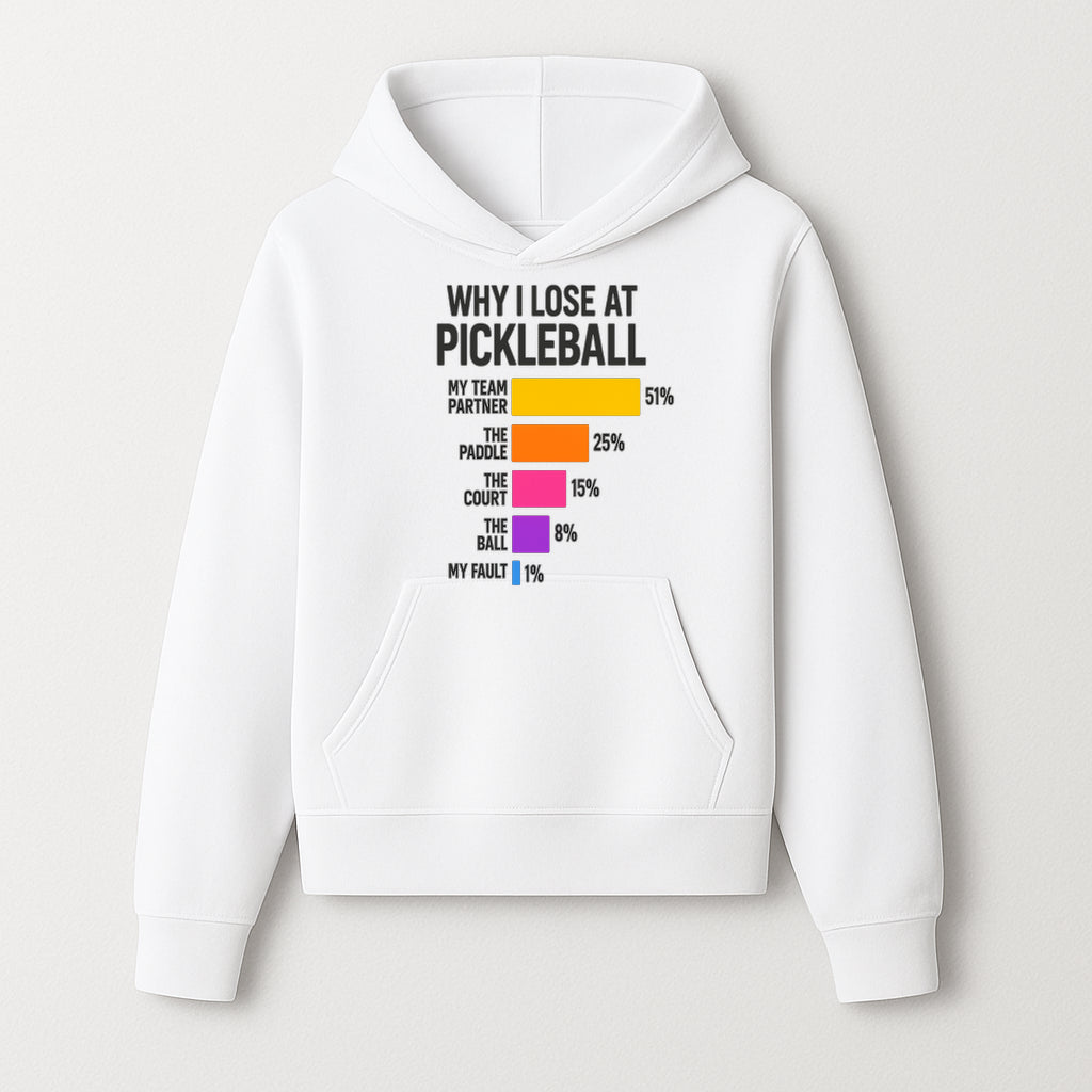 Funny Pickleball Losses Graphic: Why I Lose at Pickleball Humor Wall Art for Sports Lovers and Players - Hoodie