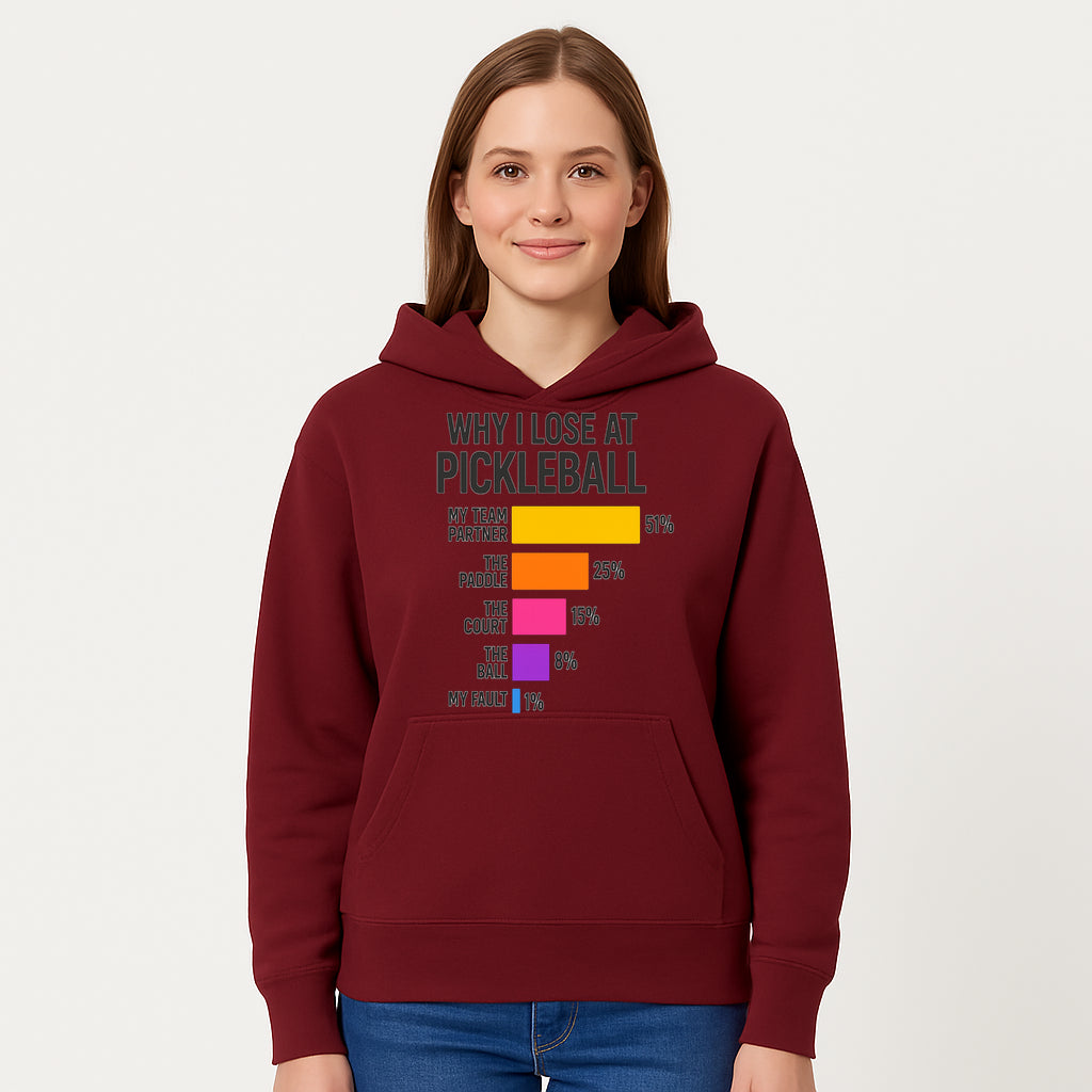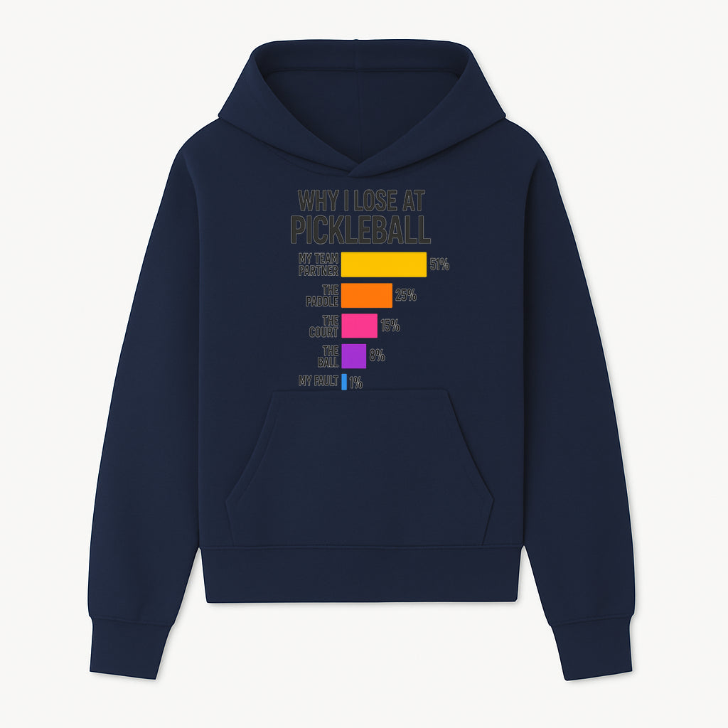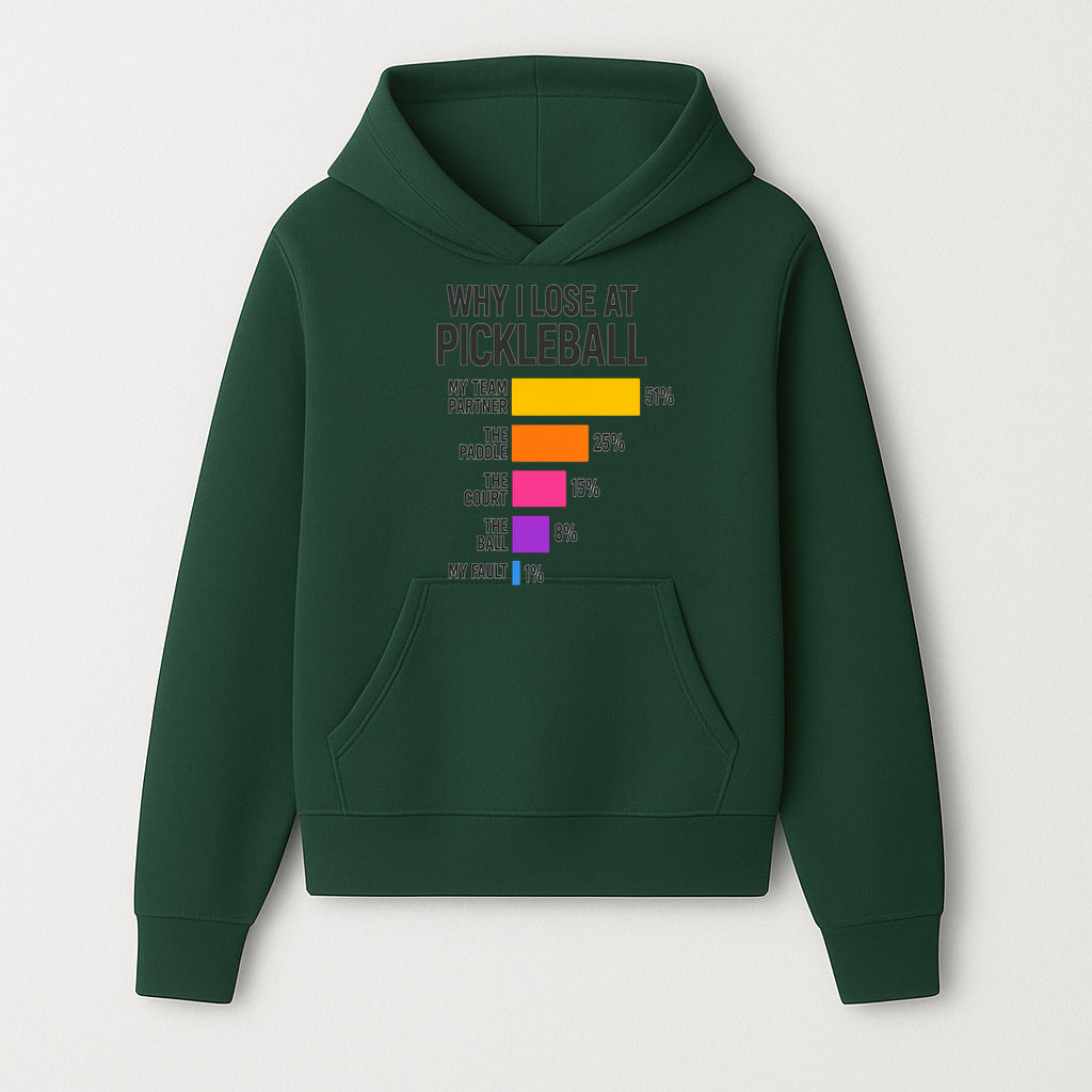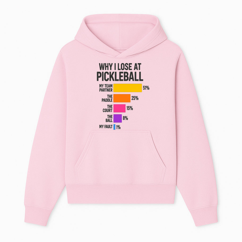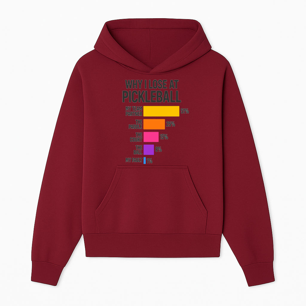 Funny Pickleball Losses Graphic: Why I Lose at Pickleball Humor Wall Art for Sports Lovers and Players - Hoodie