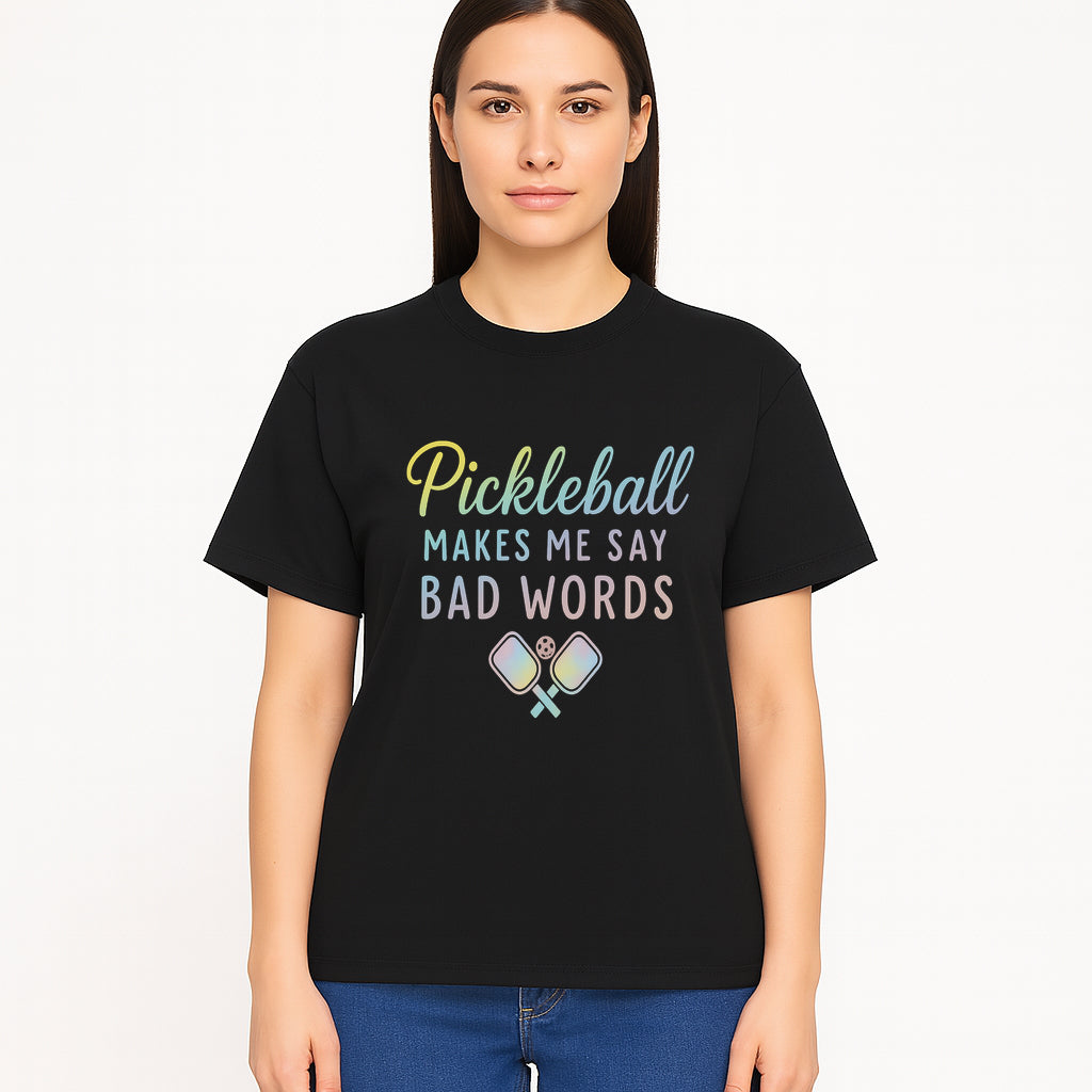 Funny Pickleball Shirt - 'Pickleball Makes Me Say Bad Words' Tee for Players, Sports Humor, Gift for Friends & Family - T-shirt