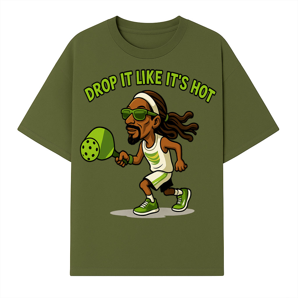Funny Pickleball T-Shirt, 'Drop It Like It's Hot' Sports Graphic Tee, Gift for Pickleball Lovers, Activewear in Green - T-shirt