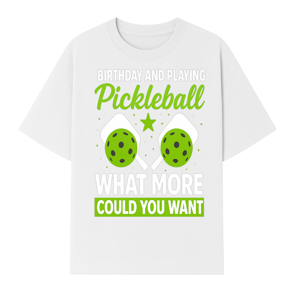 Pickleball Birthday Party Decor - Fun Celebration Theme with Neon Green Balls and Paddles, What More Could You Want? - T-shirt