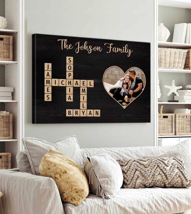 Personalized Family Name Canvas or Poster, Custom Letter Tile Wall Art, Scrabble Name Puzzle, Last Name Sign, Unique Gift for Family