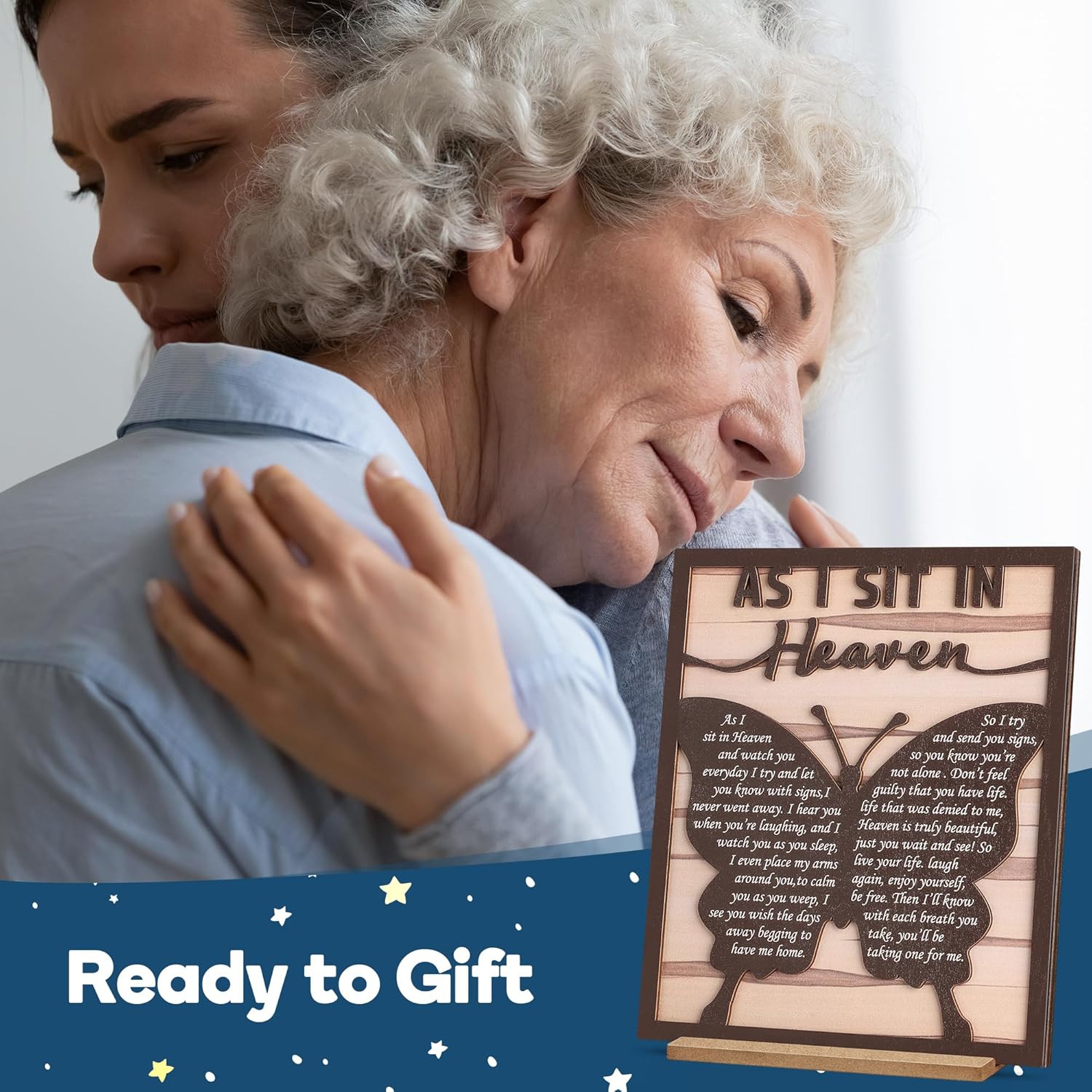 Butterfly Gifts for Women, Sympathy Gifts for Loss of Loved One, Memorial Gifts for Loss of Mom, Bereavement Gifts, In Memory of Loved One, Butterfly Wooden Silhouette Sign Plaque- As I Sit in Heaven