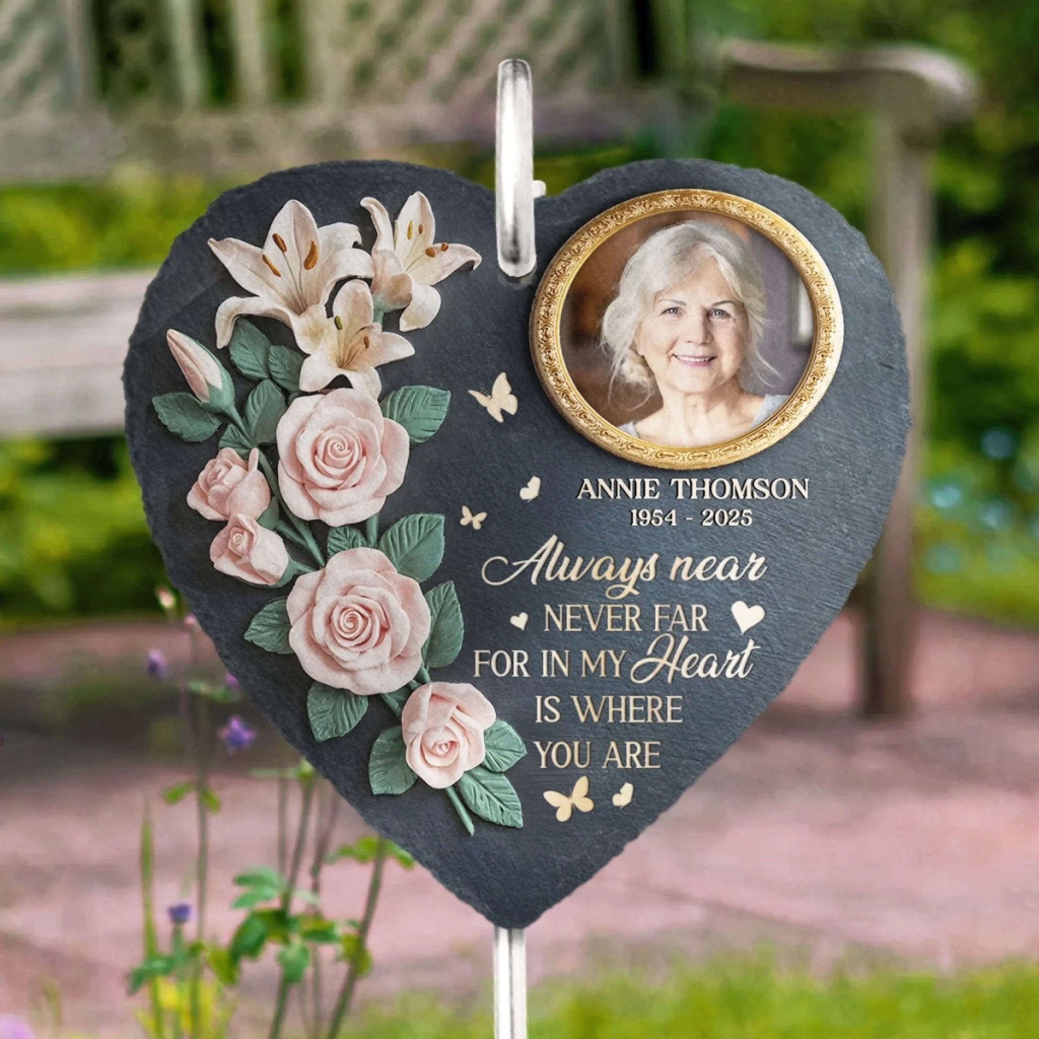 In My Heart Is Where You Are Roses And Lilies - Personalized Slate Plaque - Sympathy Gift For Family Members, Memorial Gift