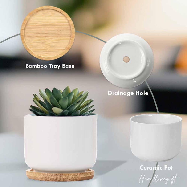 There are 2 sizes available for you to choose, pots made by ceramic with a drainage hole.